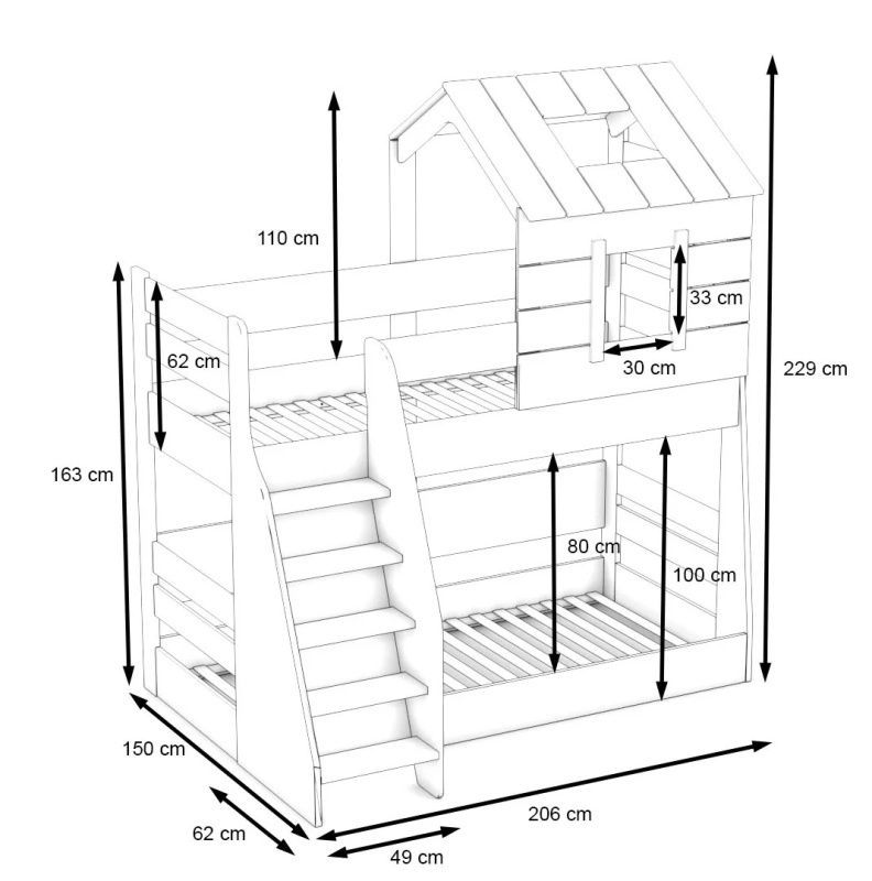 Etagenbett Baumhaus MY HOUSE, 100x200cm / 90x200cm