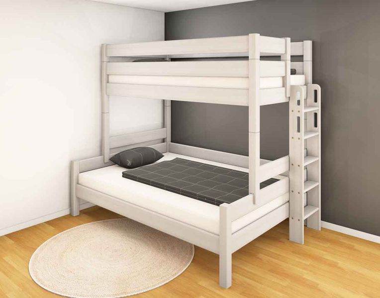 Etagenbett Stockholm 4-2-L2, Dahlhaus, massive Buche in verschiedenen Farben und Maßen - Leiter an Schmalseite Unser Etagenbett Stockholm 4-2-L2 eignet sich für Kinder, Jugendliche und Erwachsene. Bei diesem Modell können Sie zwei unterschiedliche Matratzenbreiten wählen. Mit der Absturzsicherung un