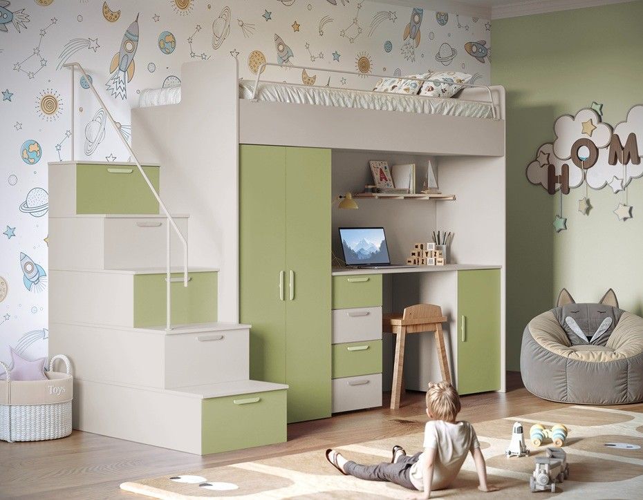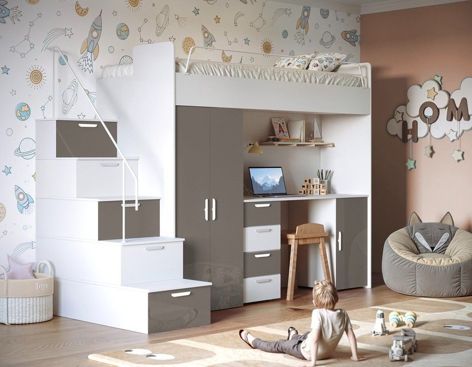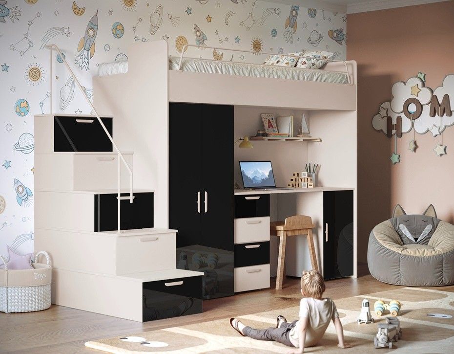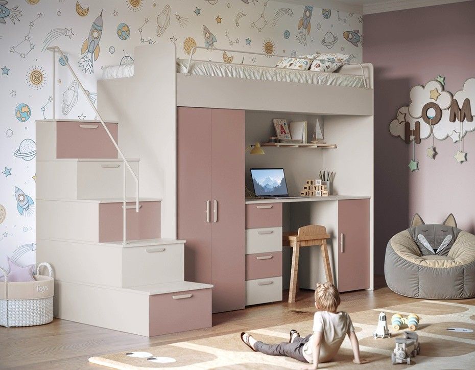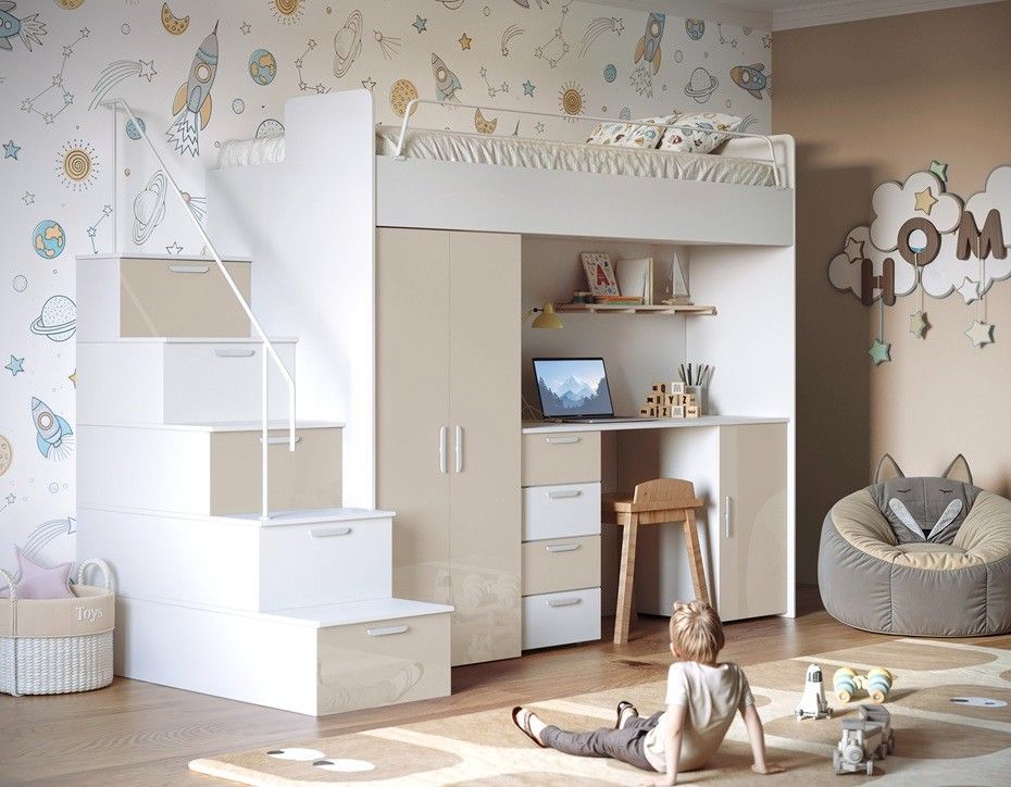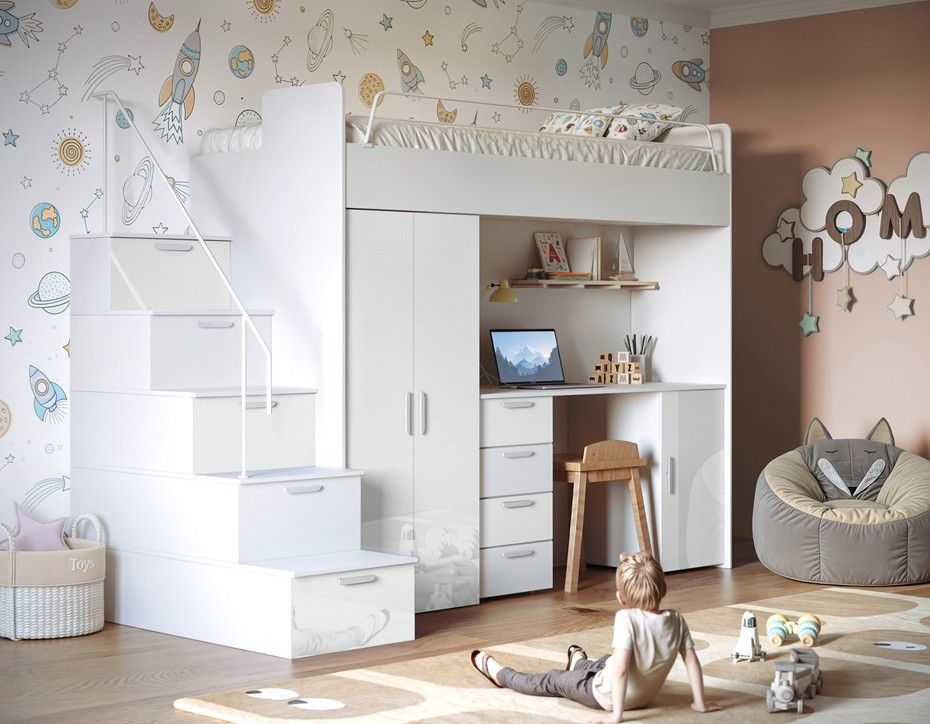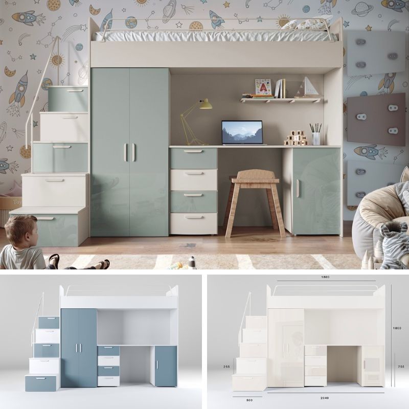017666076782 Hochbett mit Schreibtisch - FELIX 4S SPEZIFIKATION Ma ße: Breite: 254 cm Höhe: 180 cm Tiefe: 86 cm Schlaffläche: 80 x 200 cm Farbe : Weiß + Beige Weiß + Blau Weiß + Weiß Weiß + Schwarz Weiß + Violett Weiß + Mint Weiß + Rosa Weiß + Grau Kaschmir + Beige Kaschmir +