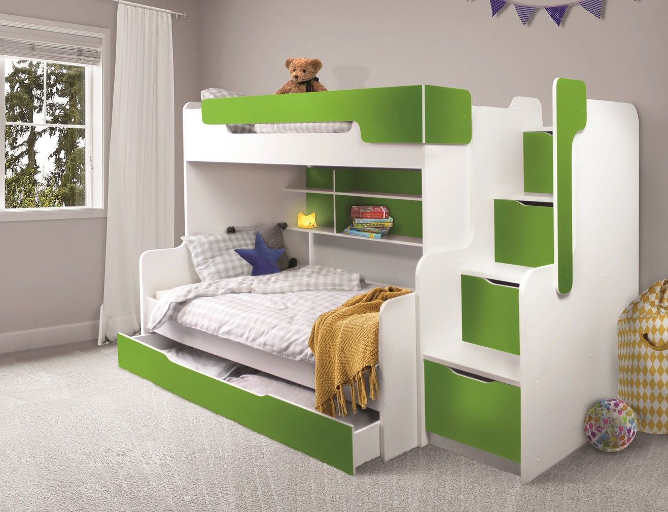 Etagenbett Harry mit seitlicher Treppe Grün