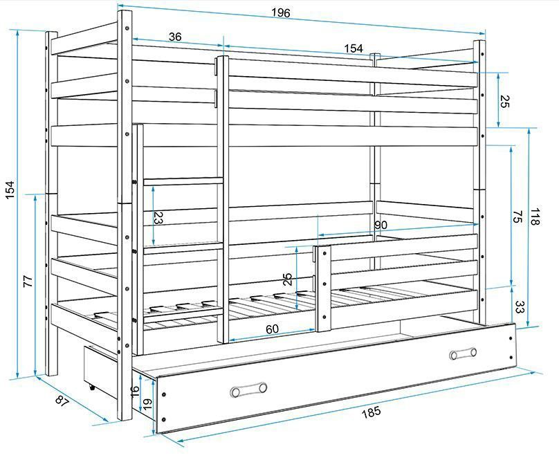 Etagenbett Hochbett ERYK 190x80cm WEIß + Matratzen + Lattenroste