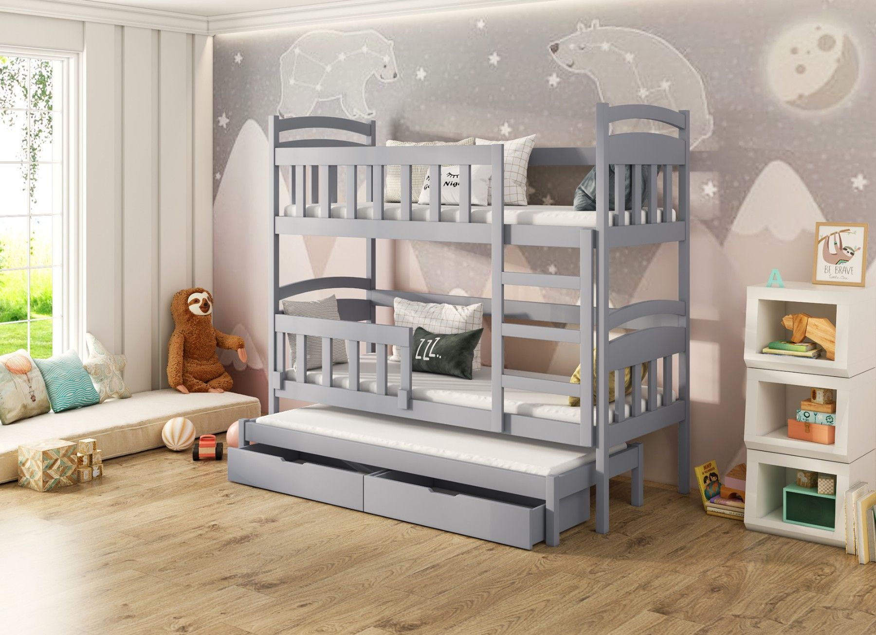 Etagenbett Hochbett Kinderbett GABI mit Geländer und 3 Matratzen 200x90 inklusive