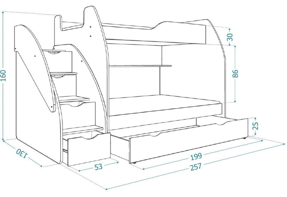 Etagenbett Hochbett Kinderbett SUSI ZU 1202 Doppelstockbett Bett Farbauswahl NEU
