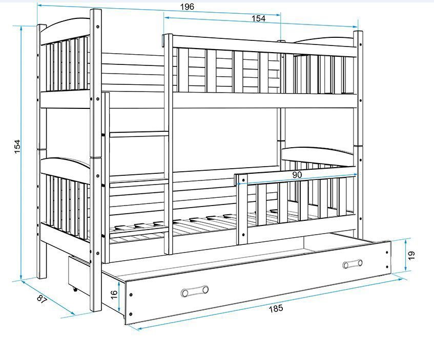 Etagenbett Hochbett Quba 190x80cm Farbe: GRAU + Matratzen + Lattenroste