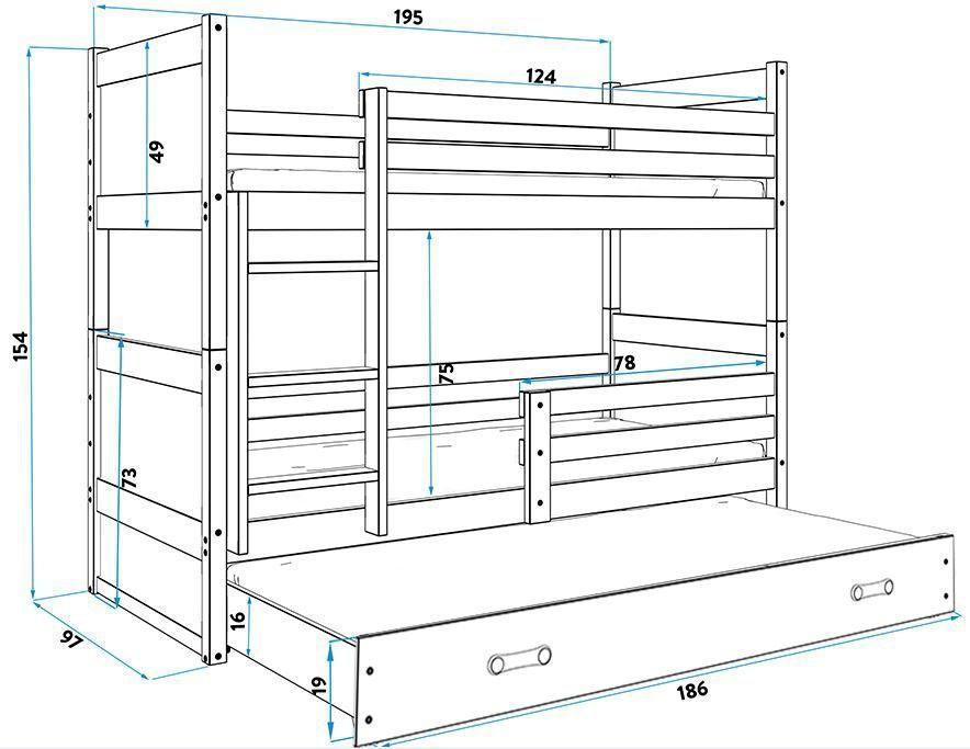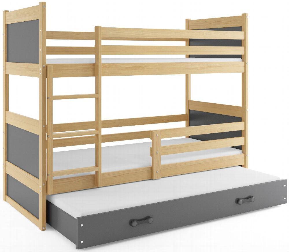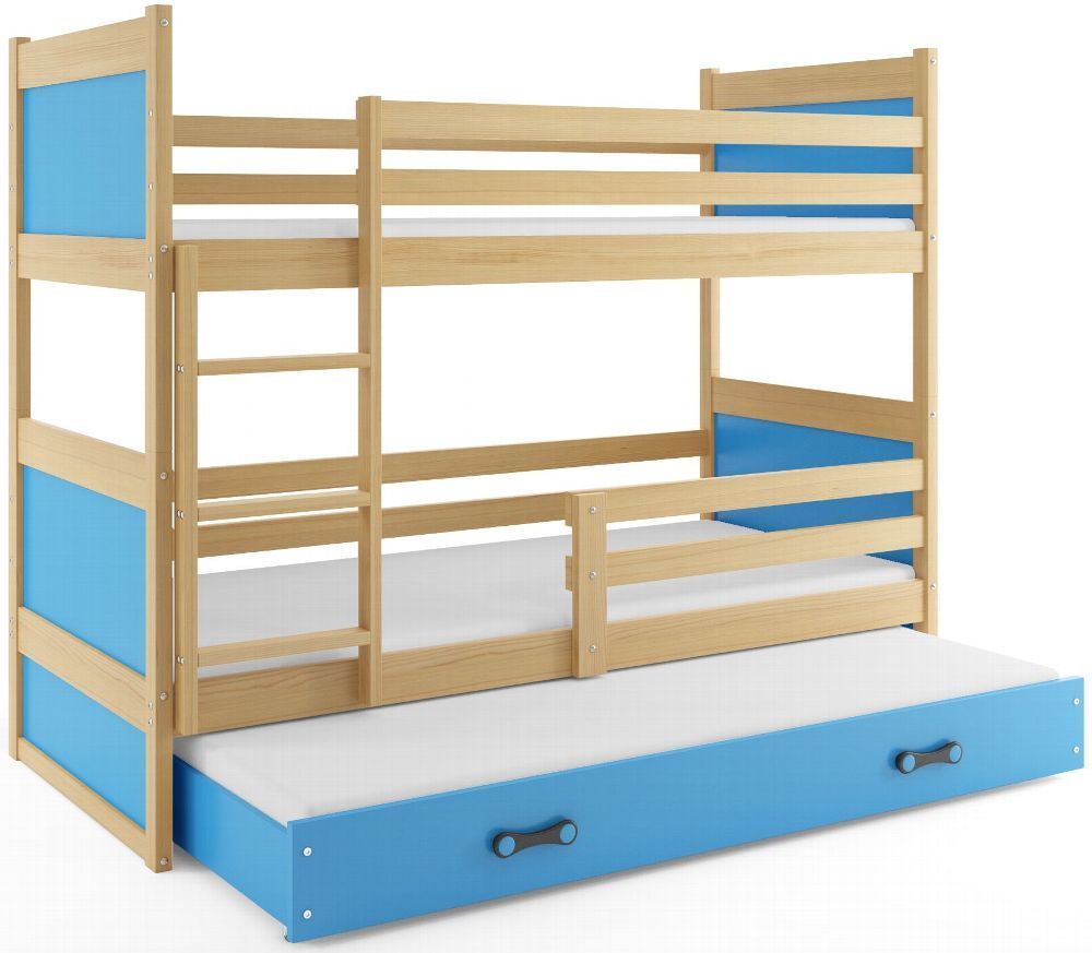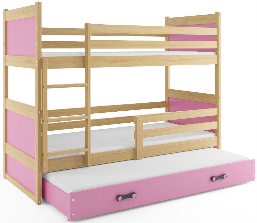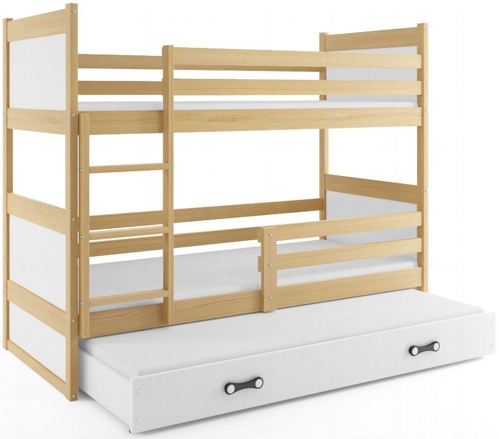 Etagenbett Hochbett Rico 3 190x90cm Kiefer unlackiert mit Matratzen und Lattenroste