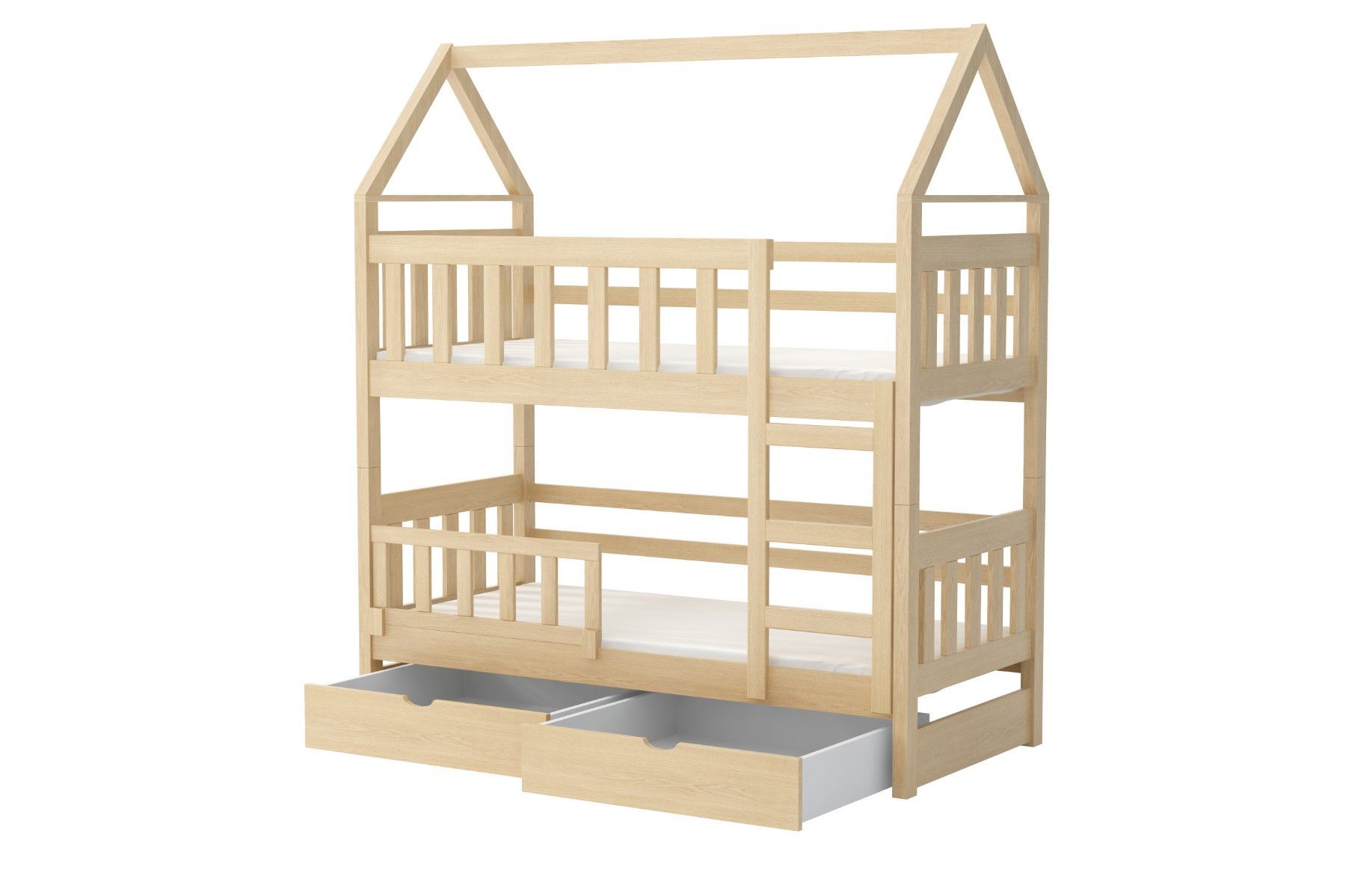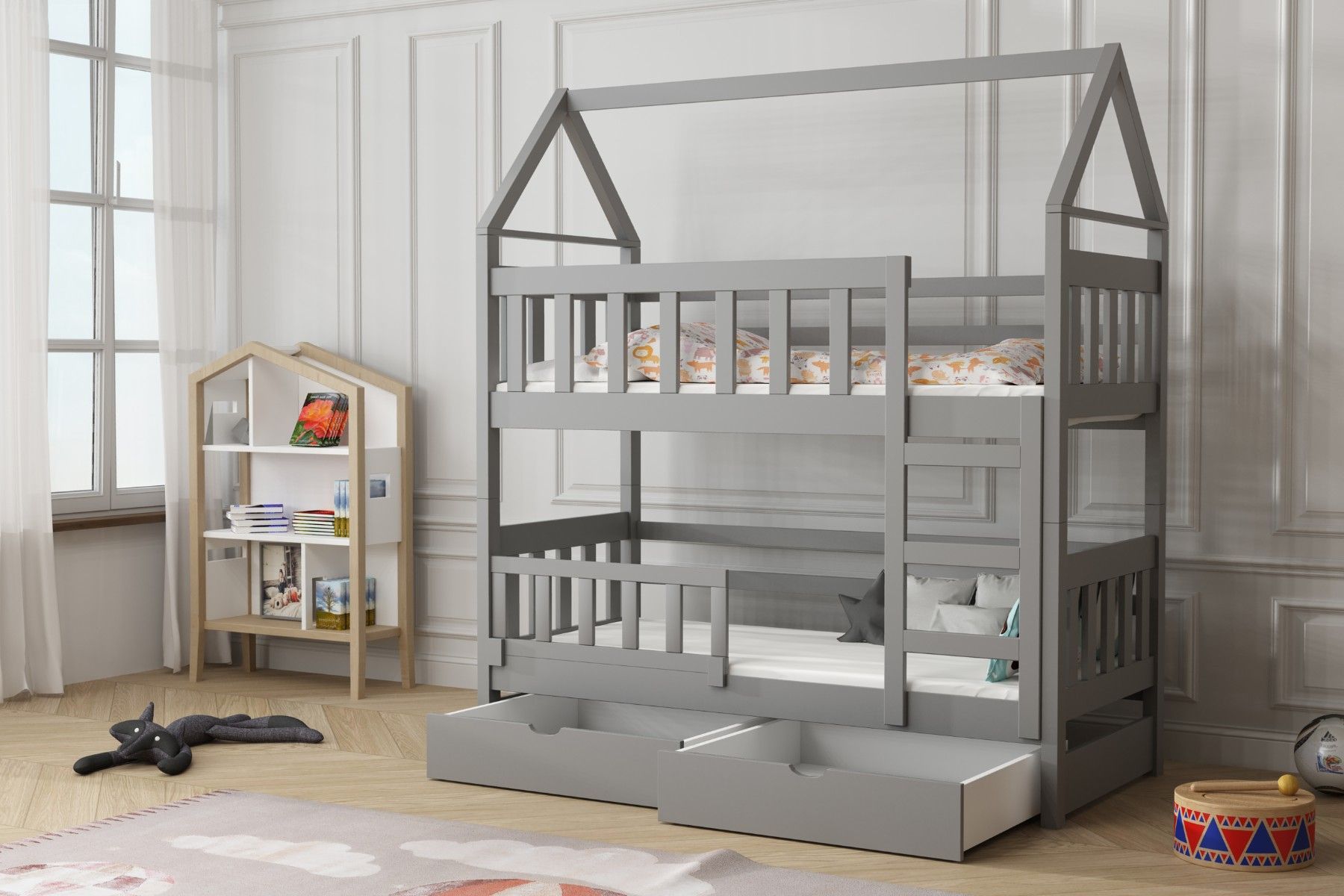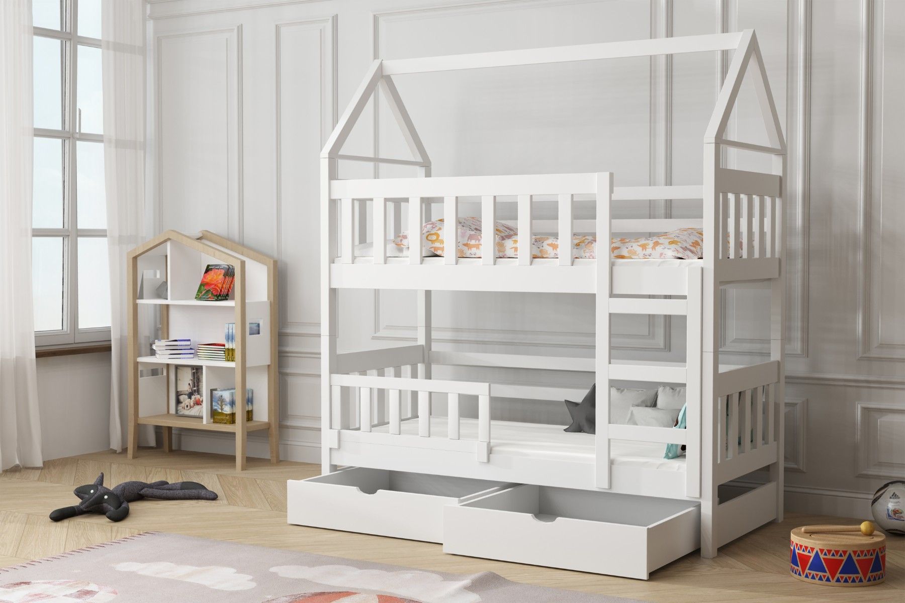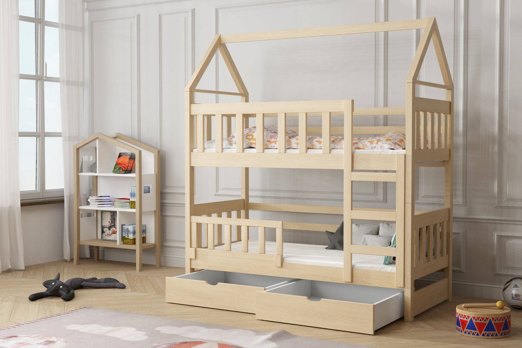 Wir haben die weiße Variante mit Schubkästen. Die Matratzen sind ausreichend und haben ein Teddymuster. Die vierjährige schläft gerne drin. Die Holzstruktur ist sichtbar, was uns sehr gr gefällt, da wir einfaches weißes lackiertes Holz nicht so schön finden.