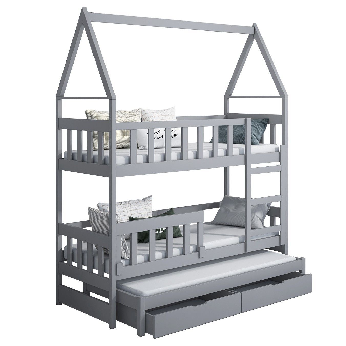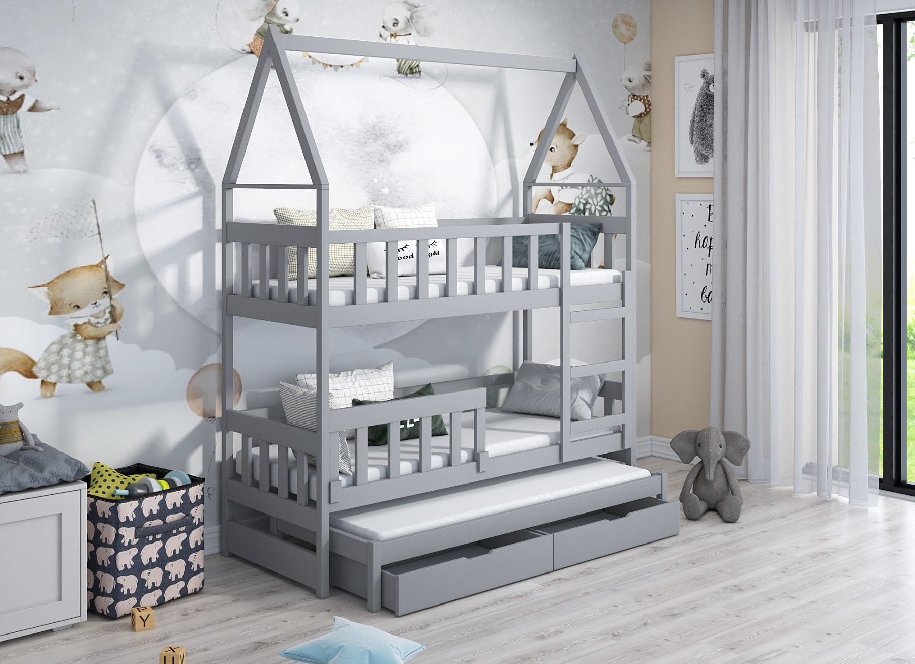 Etagenbett für Kinder Weiß, Grau, Kiefer für 3 Personen