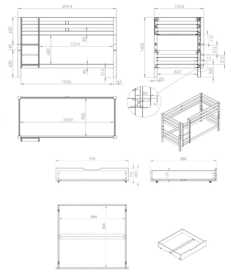 Etagenbett Karolina 210x105x140 Hochbett Massivholz Weiß