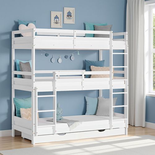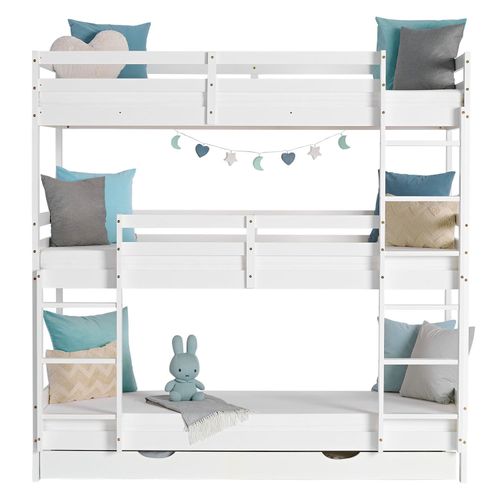 Etagenbett mit Matratzen 90x200 cm Kinderbett Dreifachbett Hochbett Bettkasten