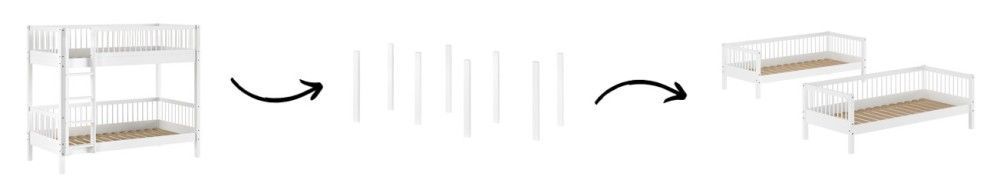 VIPACK Etagenbett mit zusätzlich geteilten Bettpfosten 90x200 Buche massiv Weiß