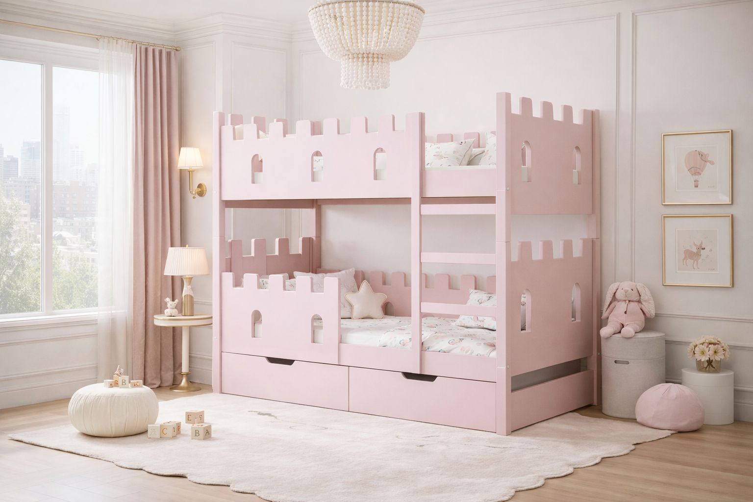 Märchenhaftes Kinder-Etagenbett im Schloss-Design – sicher, stabil platzsparend