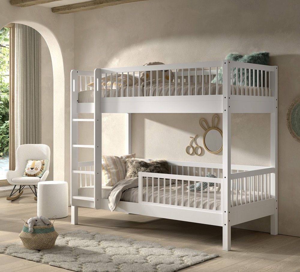 VIPACK Etagenbett Stockbett 90x200 Rausfallschutz Jugendbett Buche massiv Weiß