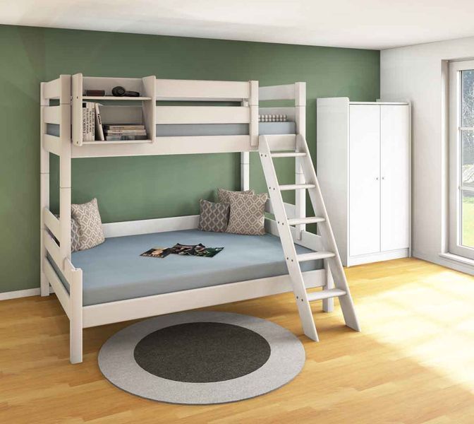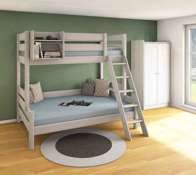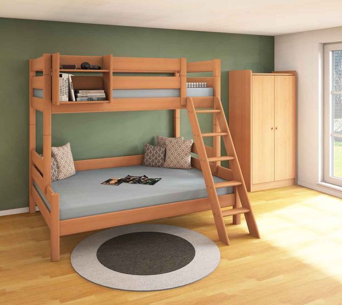 Etagenbett Stockholm 4-2, Dahlhaus, massive Buche in verschiedenen Farben und Maßen - Leiter an Längsseite Unser Etagenbett Stockholm 4-2 eignet sich für Kinder, Jugendliche und Erwachsene. Bei diesem Modell können Sie zwei verschiedene Matratzenbreiten wählen. Mit der Absturzsicherung unten vorne s
