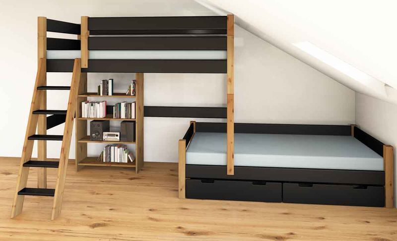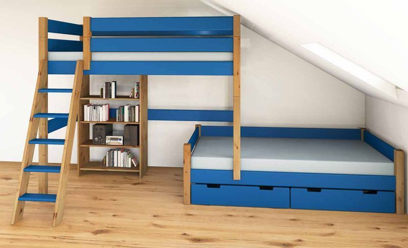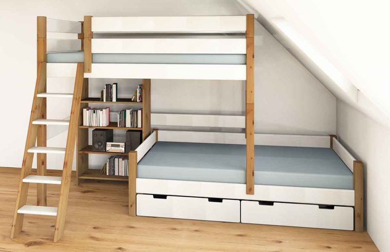 Etagenbett Stockholm 5 - für Dachschräge - zweifarbig - Kiefer