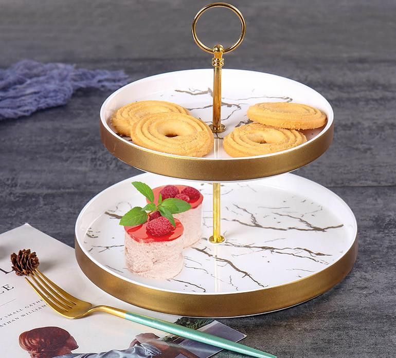 Etagere 2-stufig Servierplatten Ständer Deko Servierplatte Snacks weiß