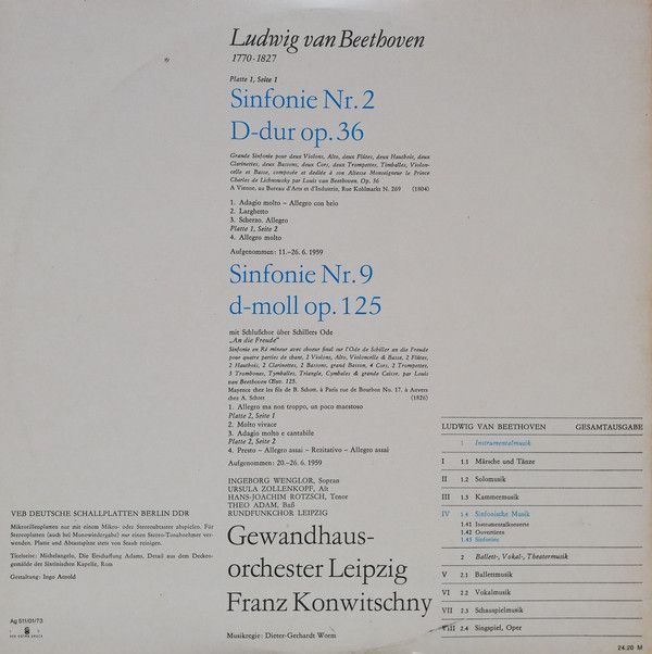 Condition Vinyl Very Good Plus (VG+) Condition Sleeve Very Good Plus (VG+) Tracks included: Sinfonie Nr. 2 D-dur Op. 36 I 1. > 1. Adagio Molto - Allegro Con Brio 2. > 2. Larghetto 3. > 3. Scherzo. Allegro II 1. > 4. Allegro Molto Sinfonie Nr. 9 D-moll Op. 125 (Mit Schlußchor Über Schille