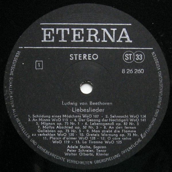 Eterna 8 26 260 - Ludwig van Beethoven, Adele Stolte, Peter Schreier, Günther L