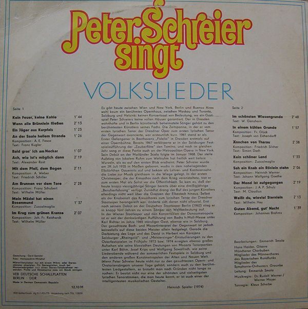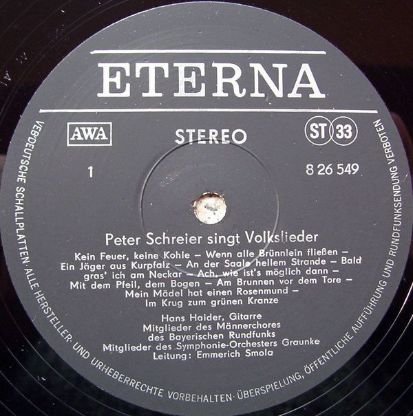 Eterna 8 26 549 - Peter Schreier - Peter Schreier Singt Volkslieder