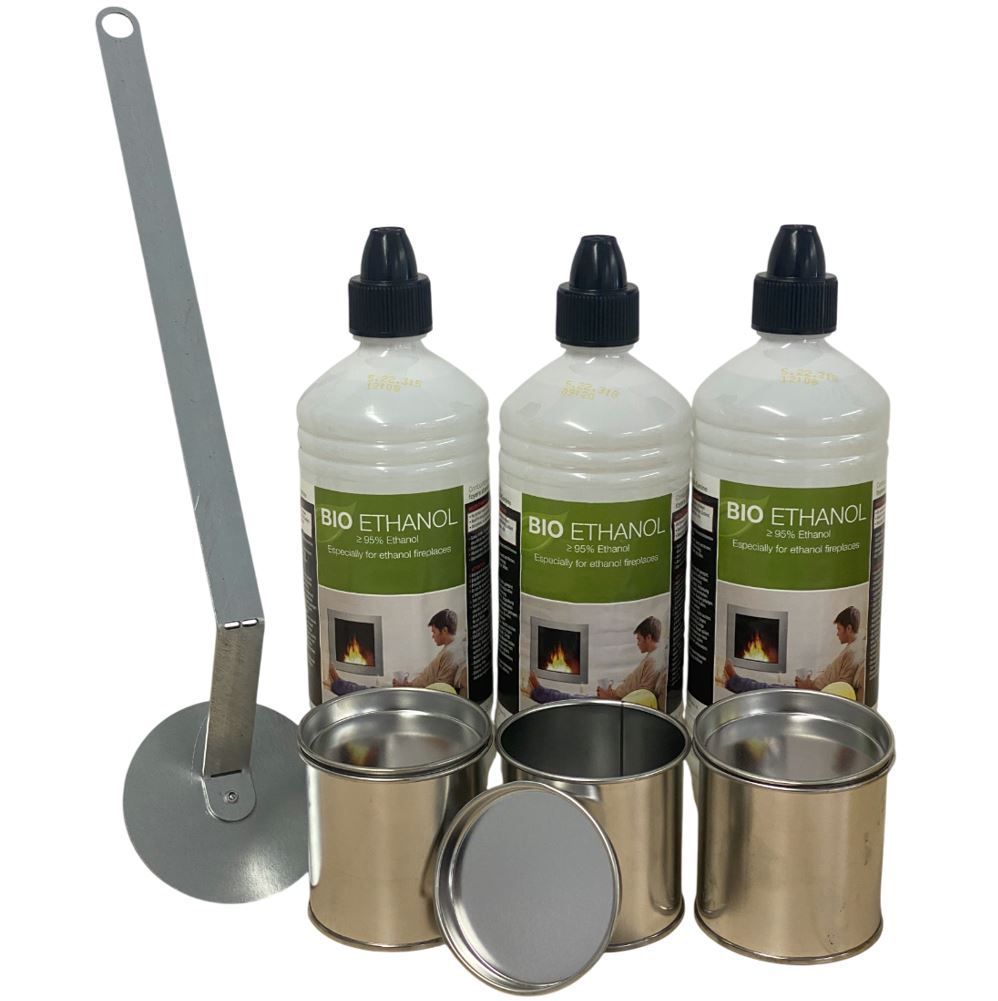 Ethanolkamin Zubehör Starterset 3x Brenndosen 3L Ethanol + Flammenlöscher