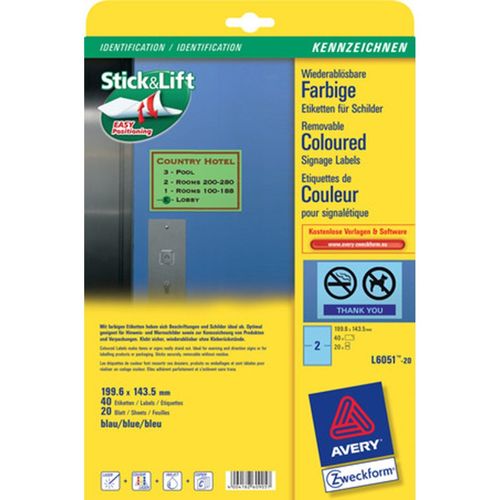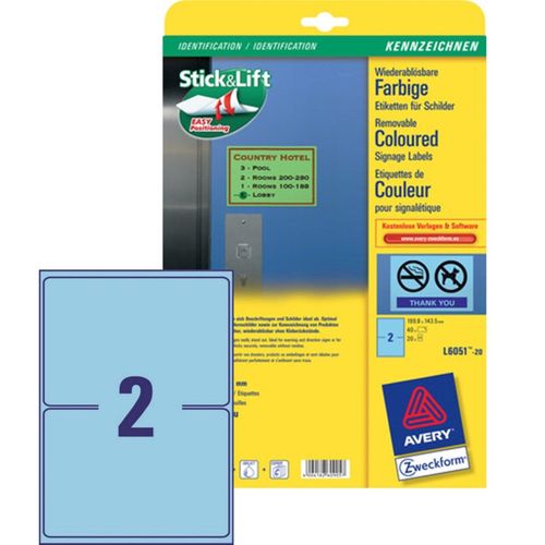 Avery Zweckform Etiketten Wiederablösbar 199,6x143,5mm Blau 40x Stück