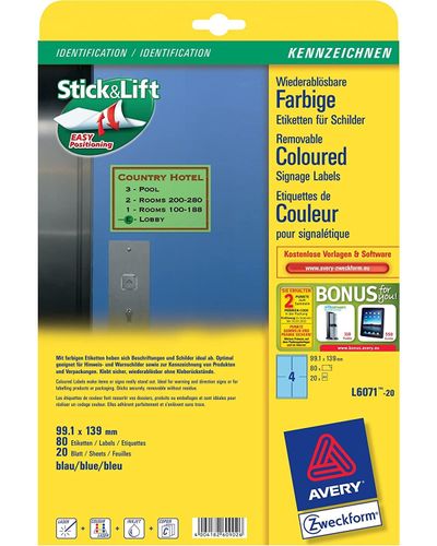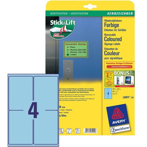 Avery Zweckform Etiketten Wiederablösbar 99,1x139mm Blau 80x Stück