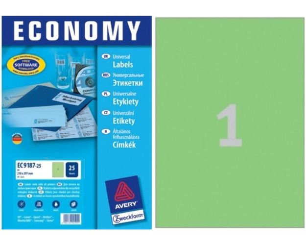 Avery Zweckform Etiketten Wiederablösbar A4 199,6x289,1mm Grün 25x Stück