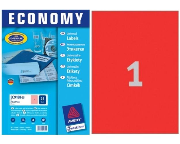Avery Zweckform Etiketten Wiederablösbar A4 199,6x289,1mm Rot 25x Stück