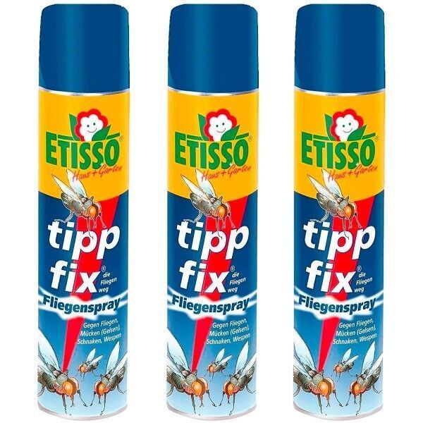 Etisso tipp fix Fliegenspray 3 x 400 ml Sparpack Mückenspray Schnaken Wespen