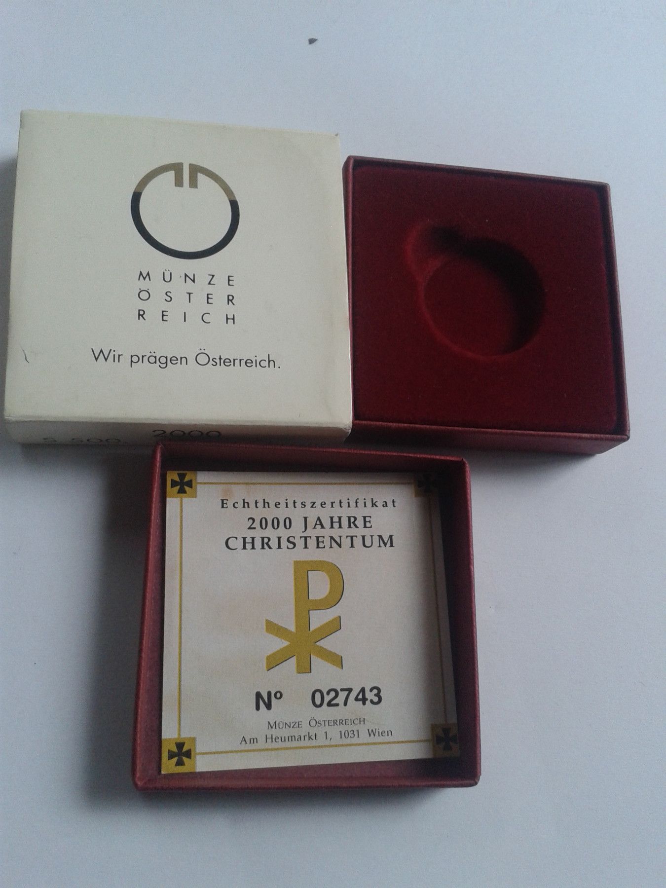 Etui Zertifikat Umverpackung 500 Schilling 2000 Österreich Geburt Christi Gold