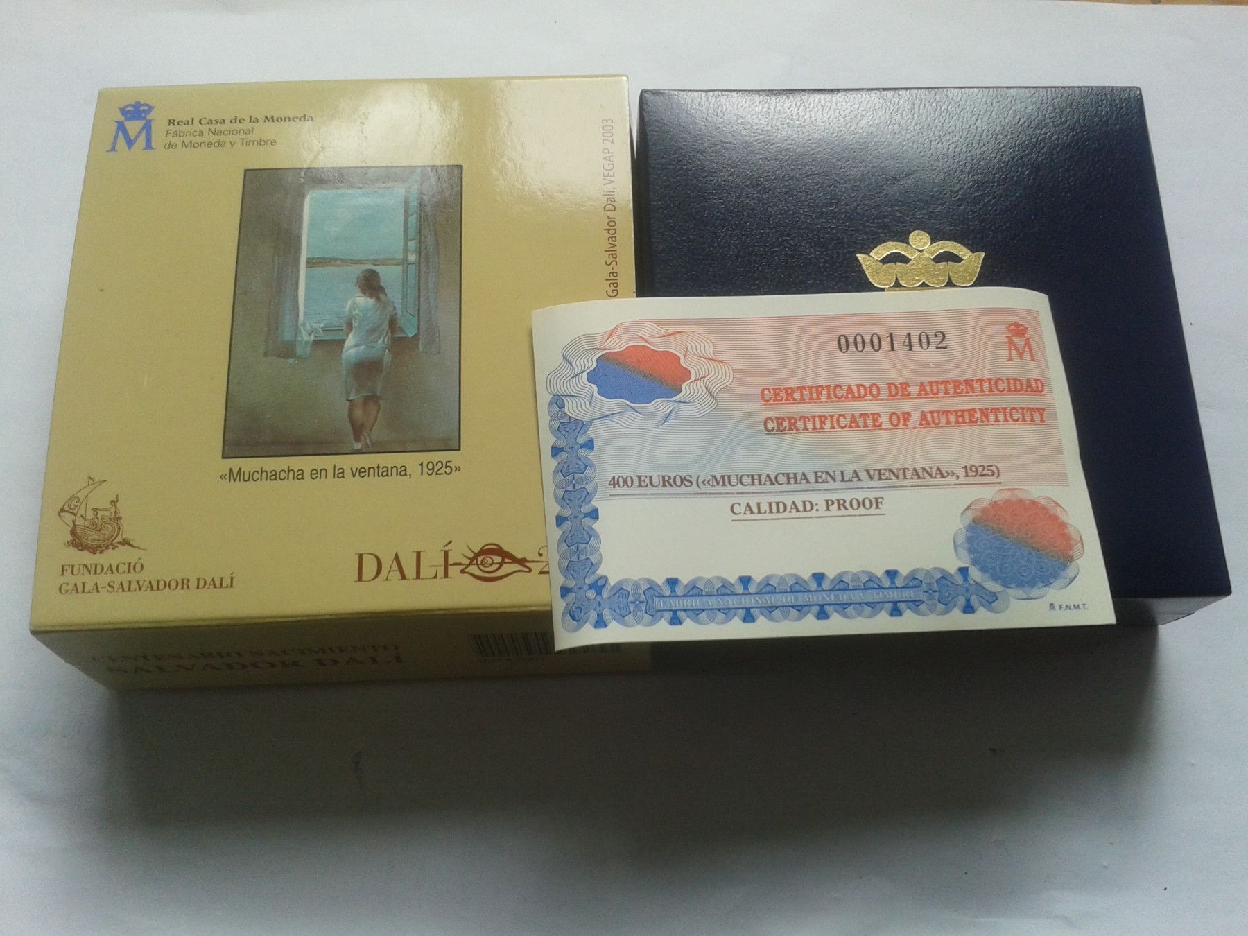 Etui, Zertifikat und Schleife für 400 euro 2009 PP Spanien Salvatore Dali 27g Gold