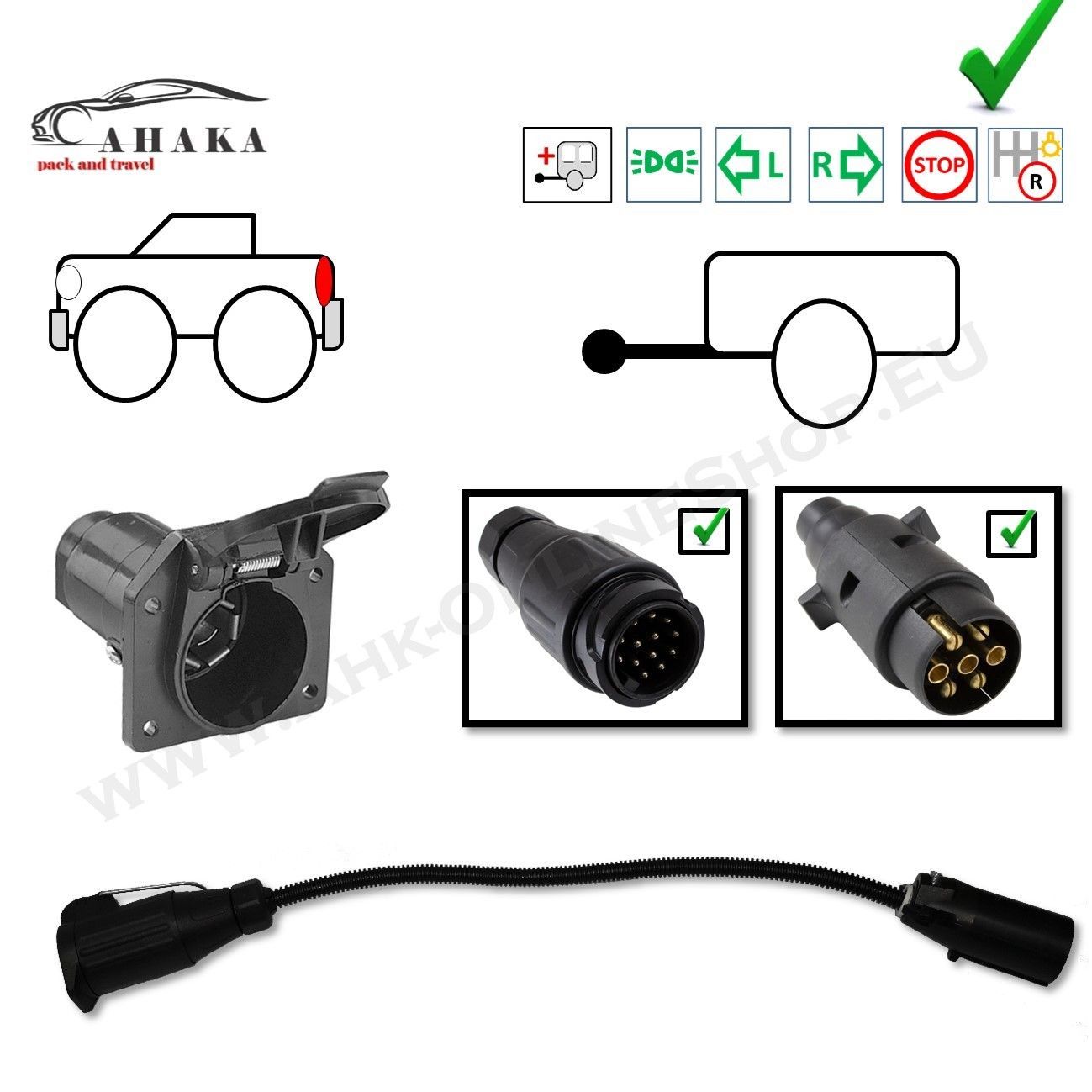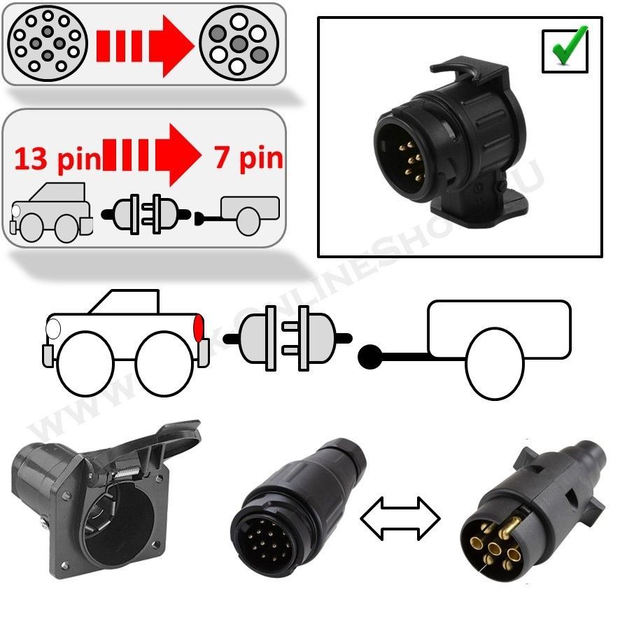 EU-Anhänger-Licht-Adapter für US-Fahrzeuge 7 Polig US auf 13 / 7 pol EU-Standard