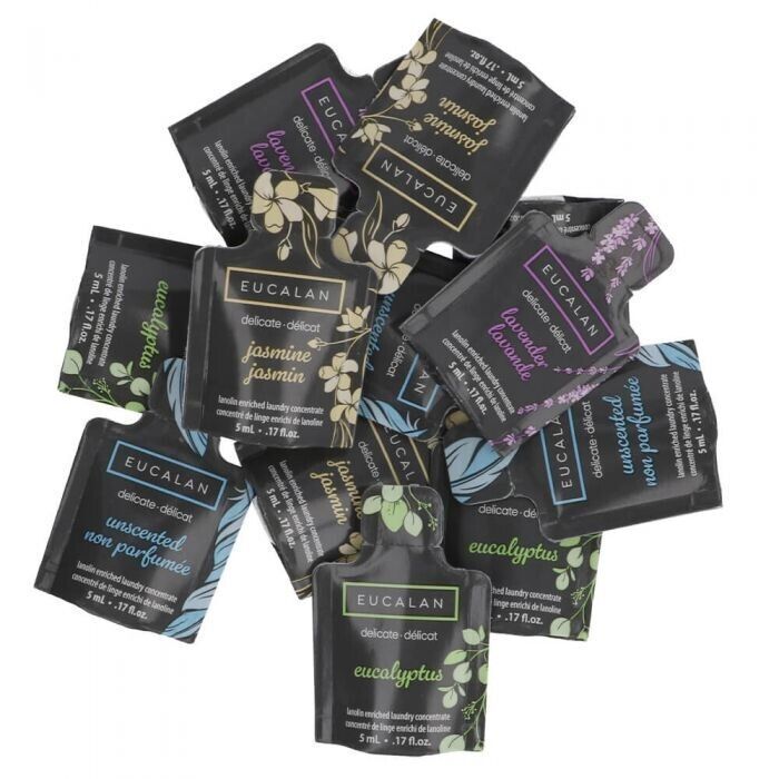 Eucalan in versch. Düften, 5er Set, natürliches Waschmittel Wolle, Seide 5x5ml