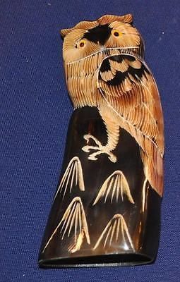 schöne Eulen, Uhus , Käuze aus Büffelhorn liebevoll handgeschnitzt Höhe siehe im Drop- Down