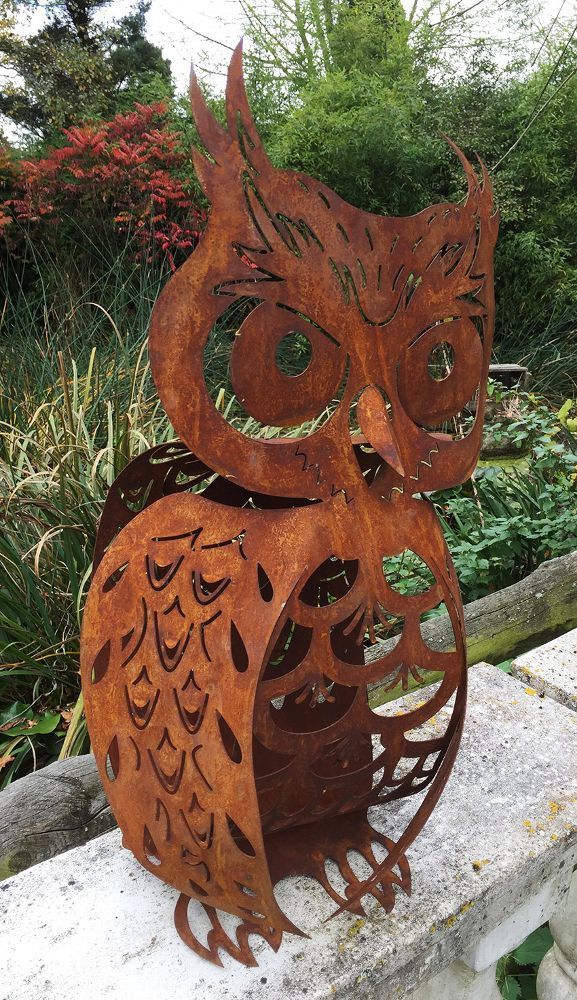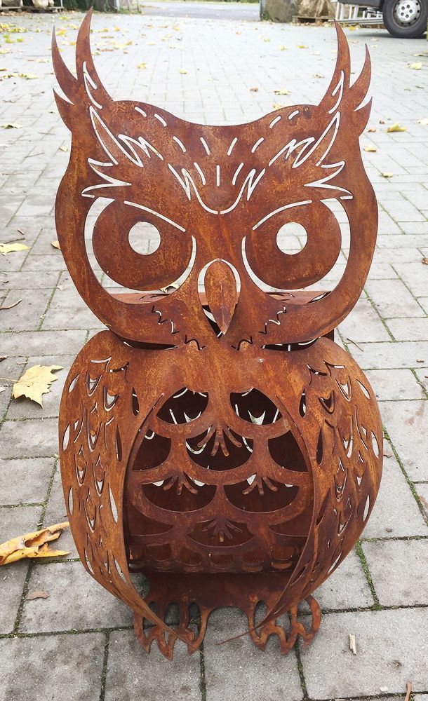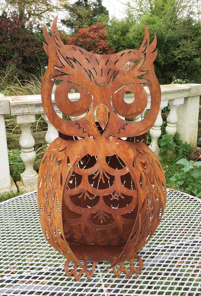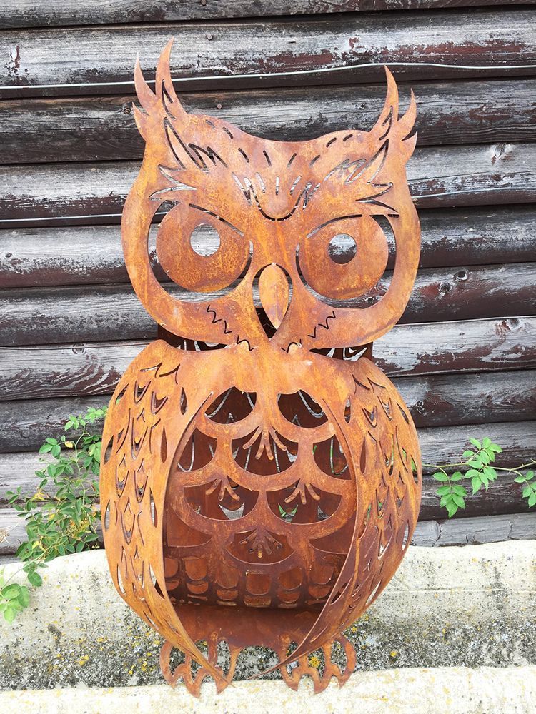 Eule filigran 3D Höhe 60cm Edelrost Rost Beleuchten Uhu Rostfigur Metall Figur