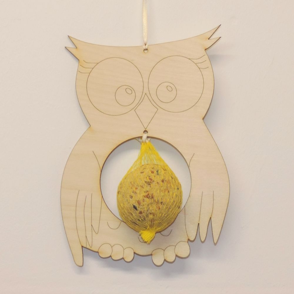 Eule Meisenknödelhalter, Halter für Meisenknödel Holz 20cm DIY Vogelfutter