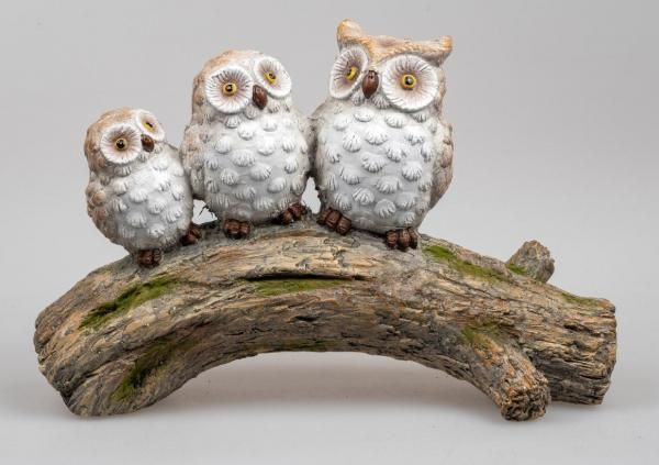 Formano Eulen-Familie auf einem Zweig 43 cm, naturfarben