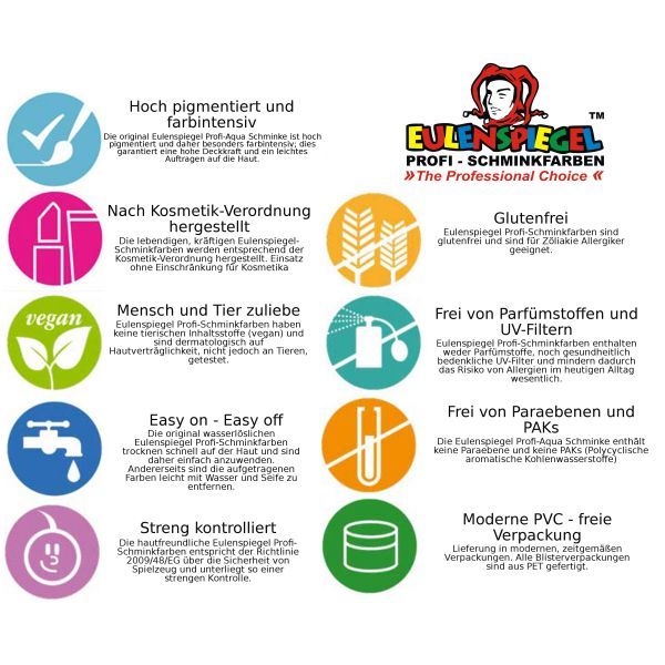 - weiß, schwarz, gelb, himmelblau, smaragdgrün, hellrot, Perlglanz-gold, Perlglanz-platin, Perlglanz-orange, braun, lila, pink, goldgelb, dunkelorange, beige, rostbraun, königsblau, hexengrün, weinrot, türkis und hellpink