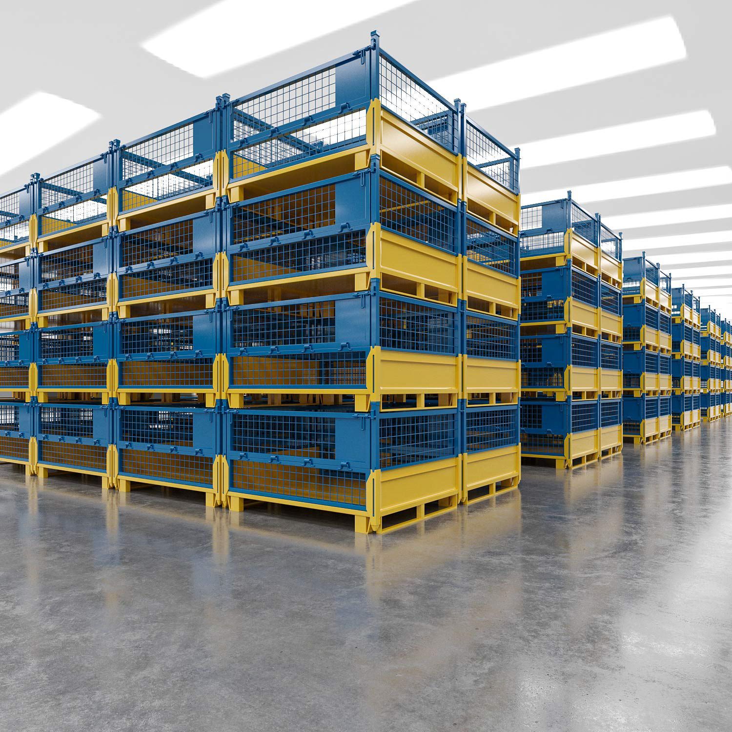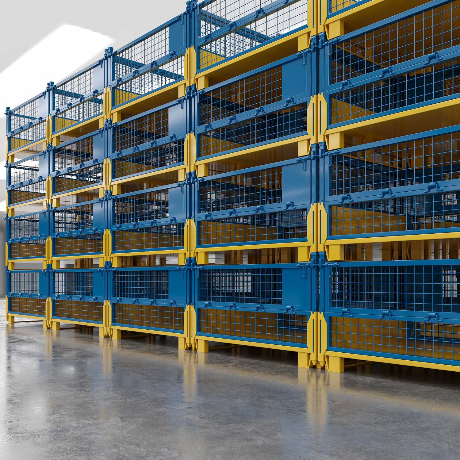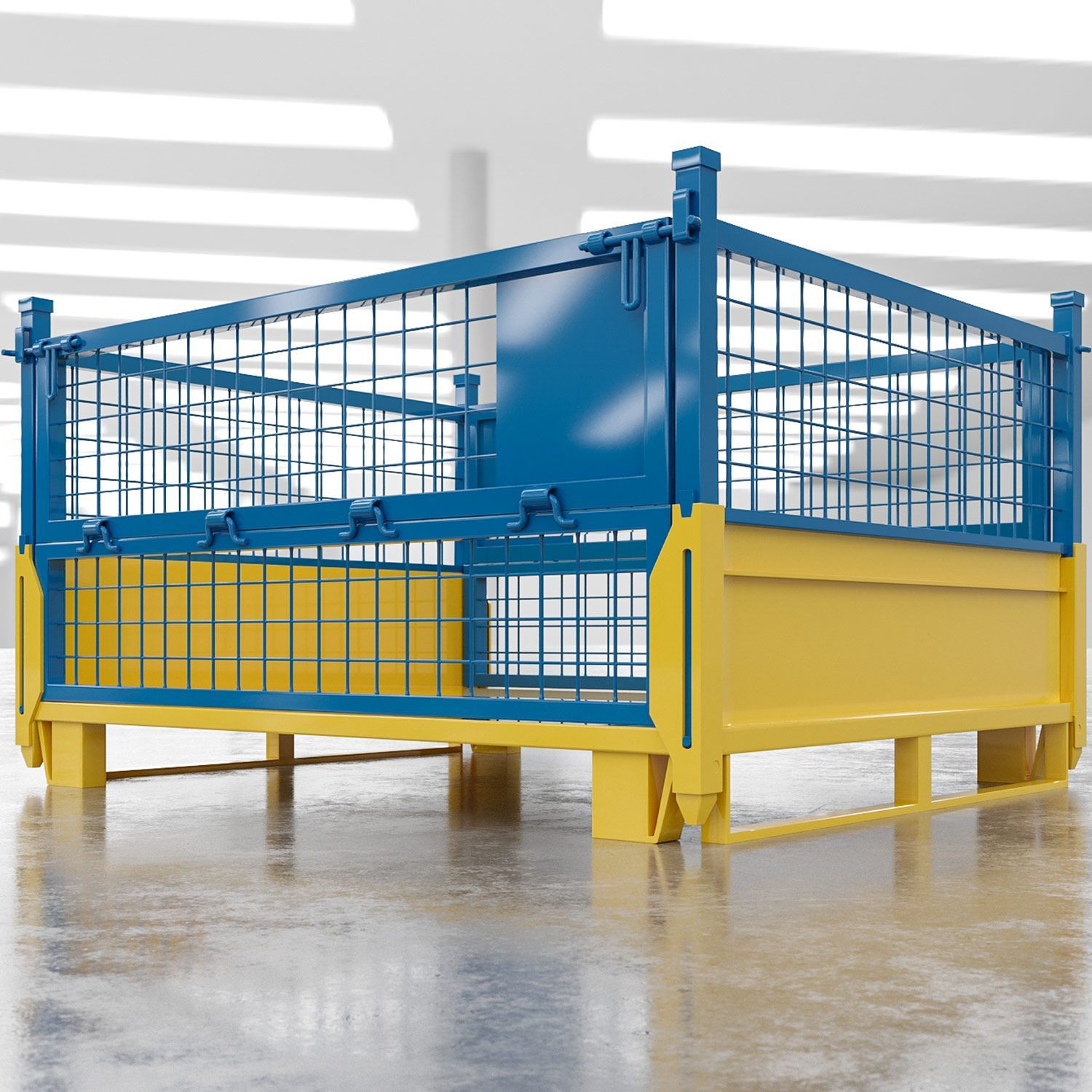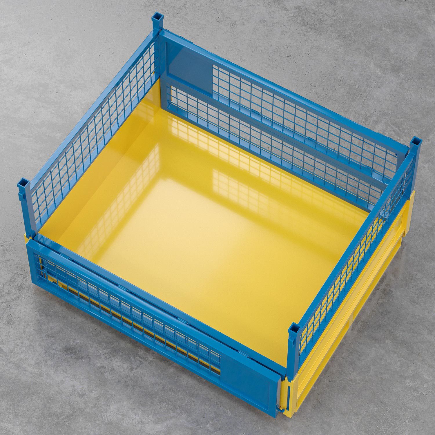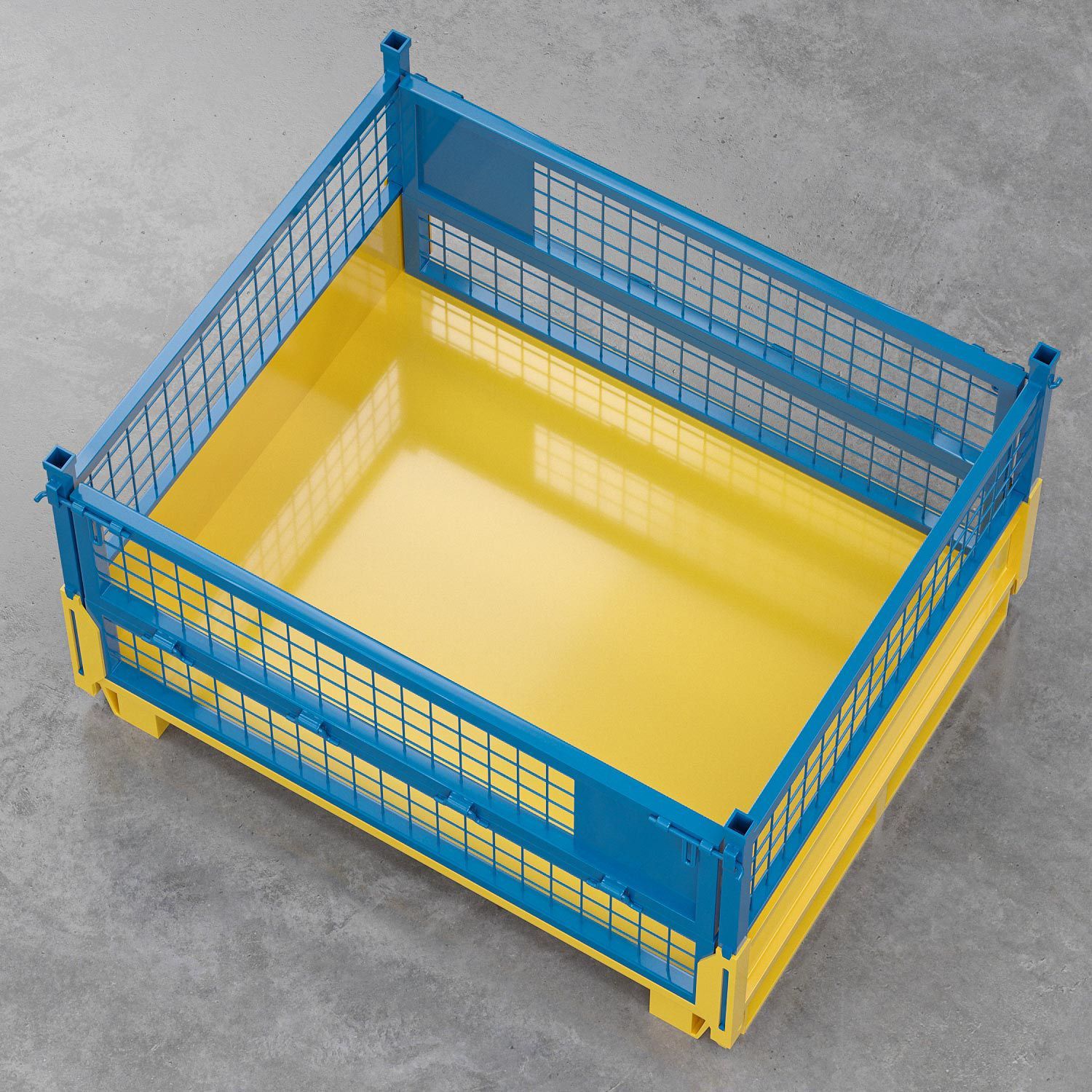 EURO | Gitterbox | Gelb/Blau | B125xT100xH85cm | DB Lager Industrie
