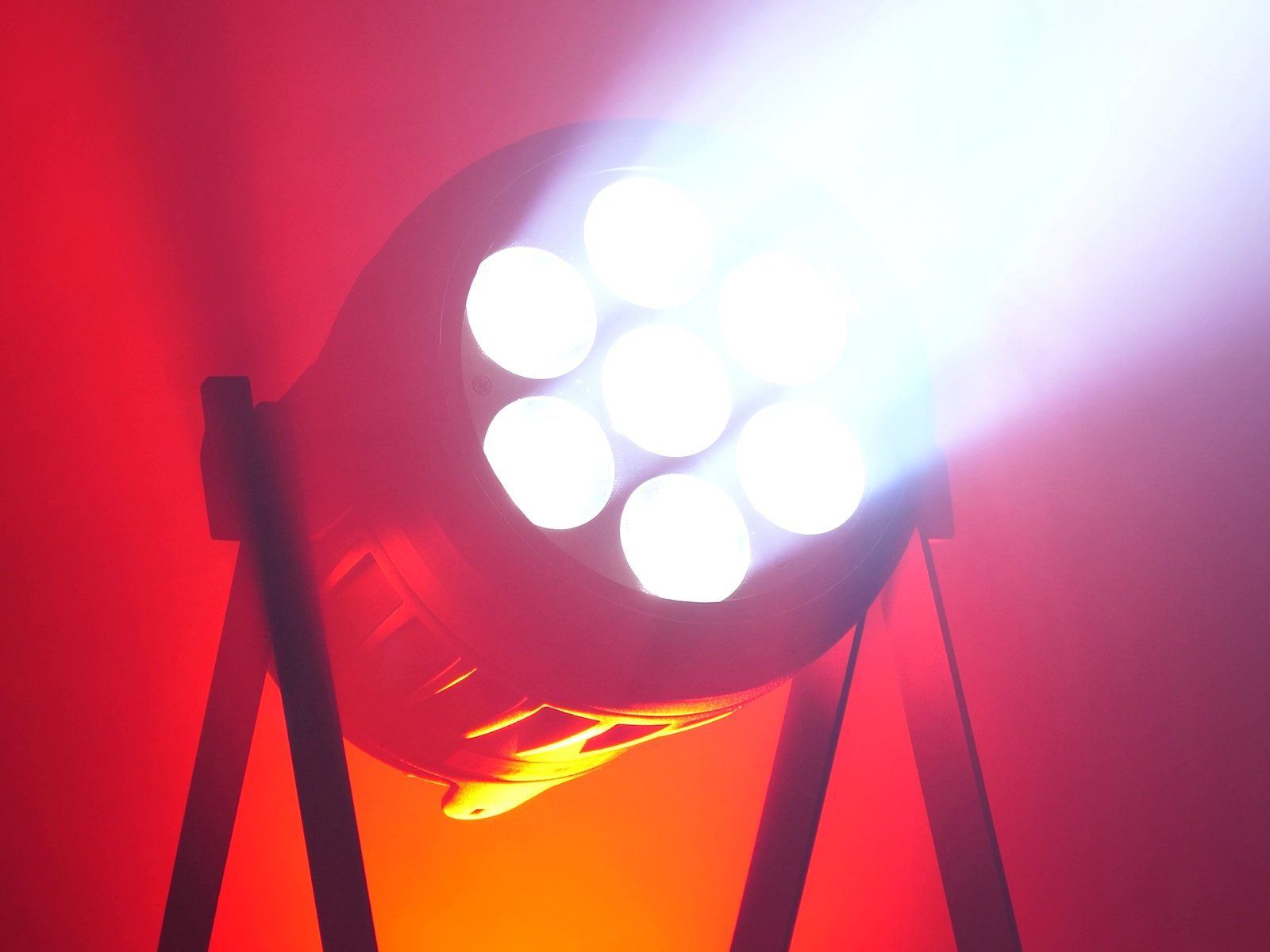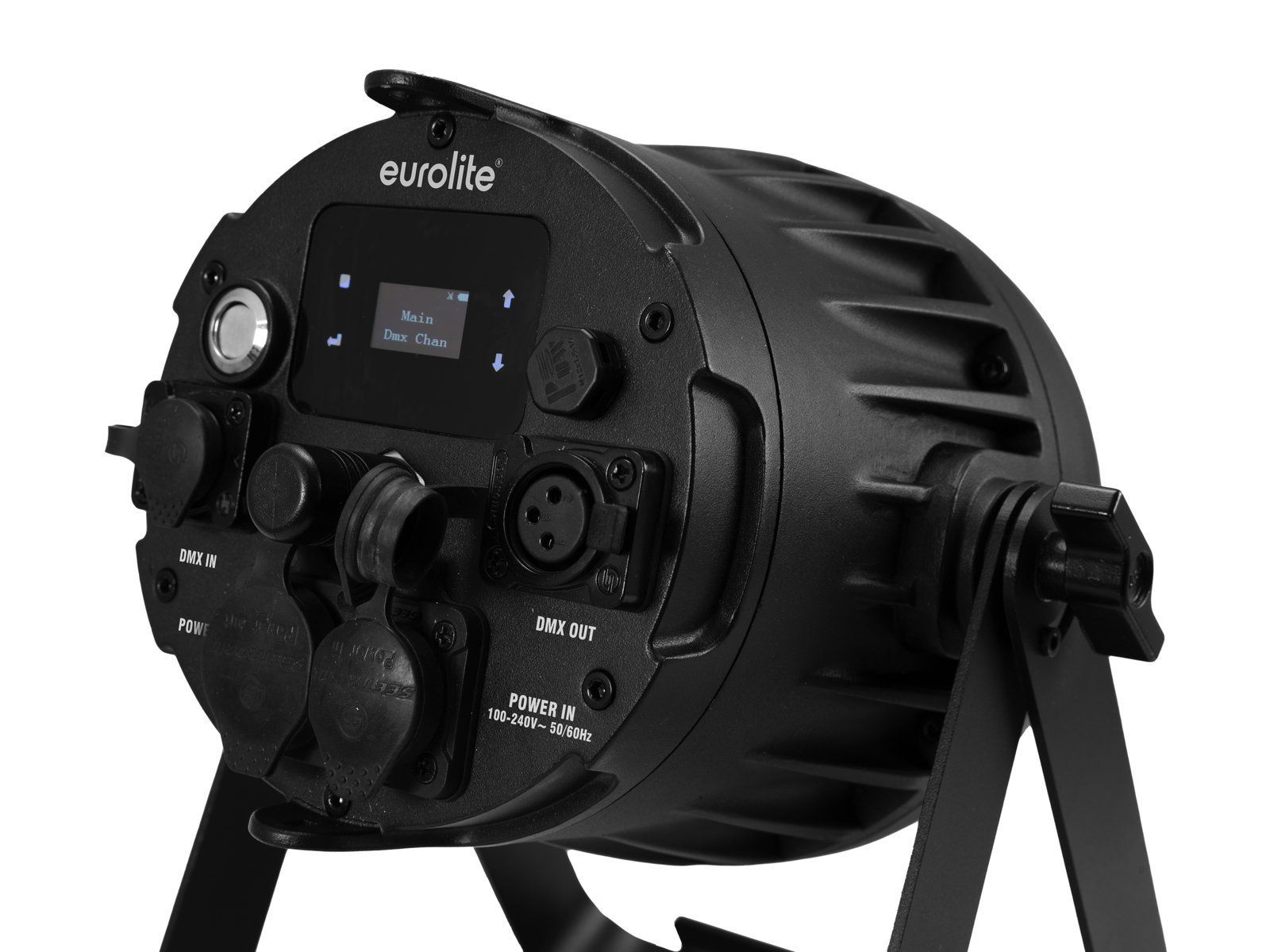 eurolite Akku IP Par 7 QCL WDMX Integrierter W-DMX-Transceiver für kabellose DMX-Steuerung Zwei zusätzliche Frostfilter für ein homogenes und weiches Licht Integrierte Ladeautomatik mit Statusanzeige Netzeingang und Netzausgang zum einfachen Zusammenschalten von bis zu 8 Geräten Betriebsdauer bis zu
