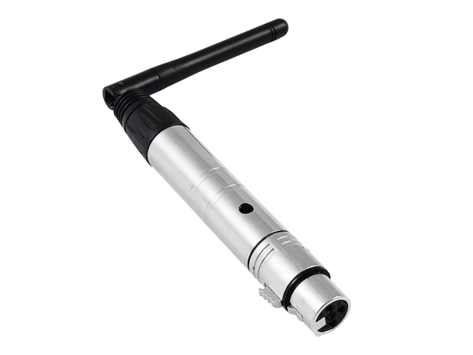 eurolite QuickDMX Funkempfänger DMX-Funkempfänger 2,4 GHz Benutzerfreundlicher 3-poliger XLR-Stecker (female) mit schwenkbarer Antenne Mit Drahtlos-DMX entfällt die aufwändige Verkabelung zwischen DMX-Controller und den DMX-gesteuerten Geräten in Lichtanlagen Durch GFSK-Modulation mit 78 Kanälen stö