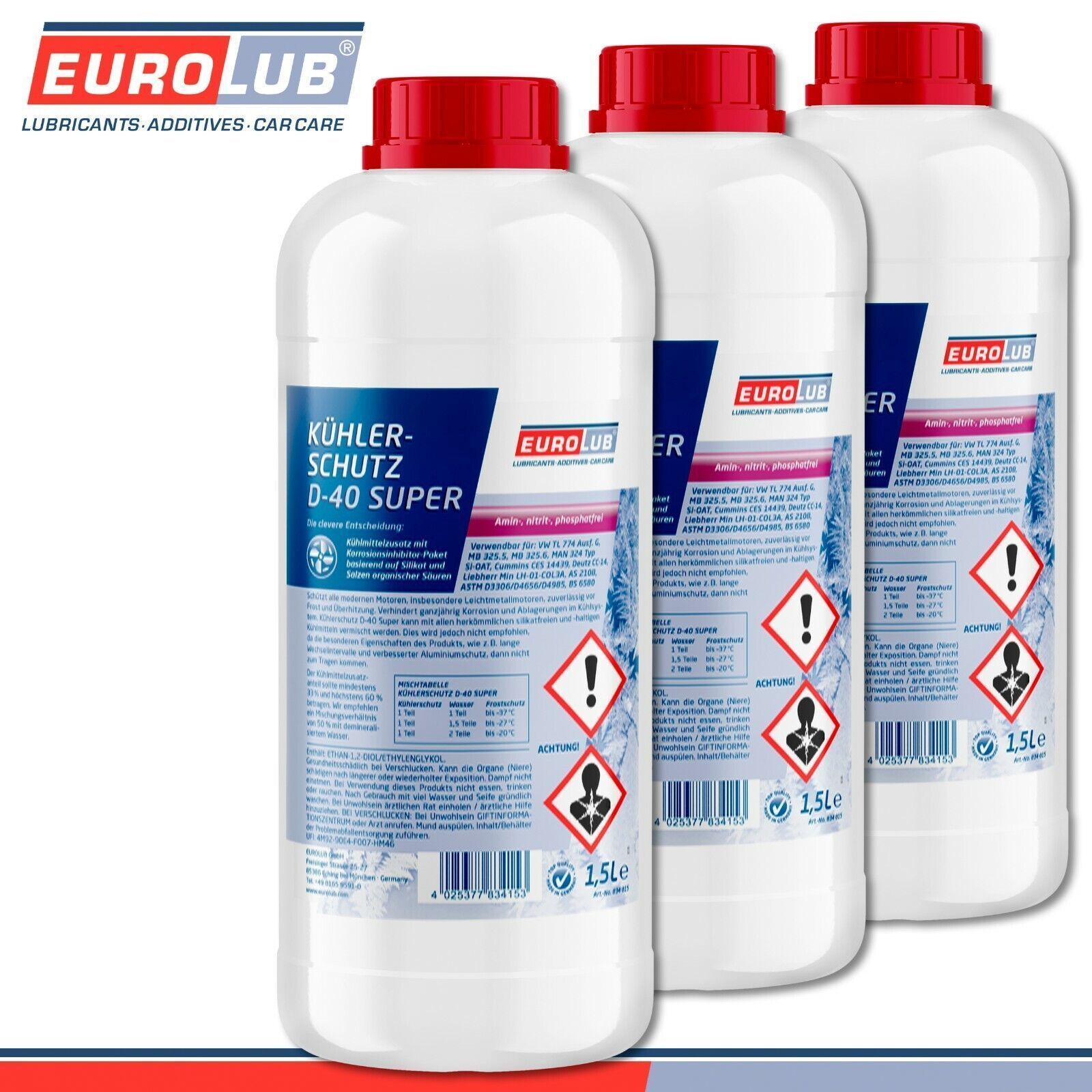 EuroLub EuroLub 3 x 1,5 l Kühlerschutz D-40 Super Top Qualität Frostschutz