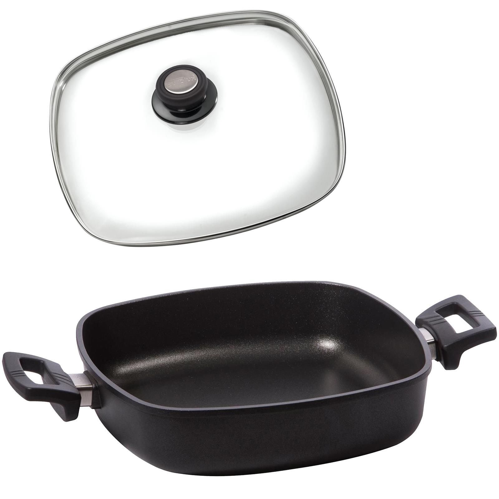 Eurolux Kasserolle Gußeisen 24 cm eckig Aluguss antihaft Bratentopf & Glasdeckel