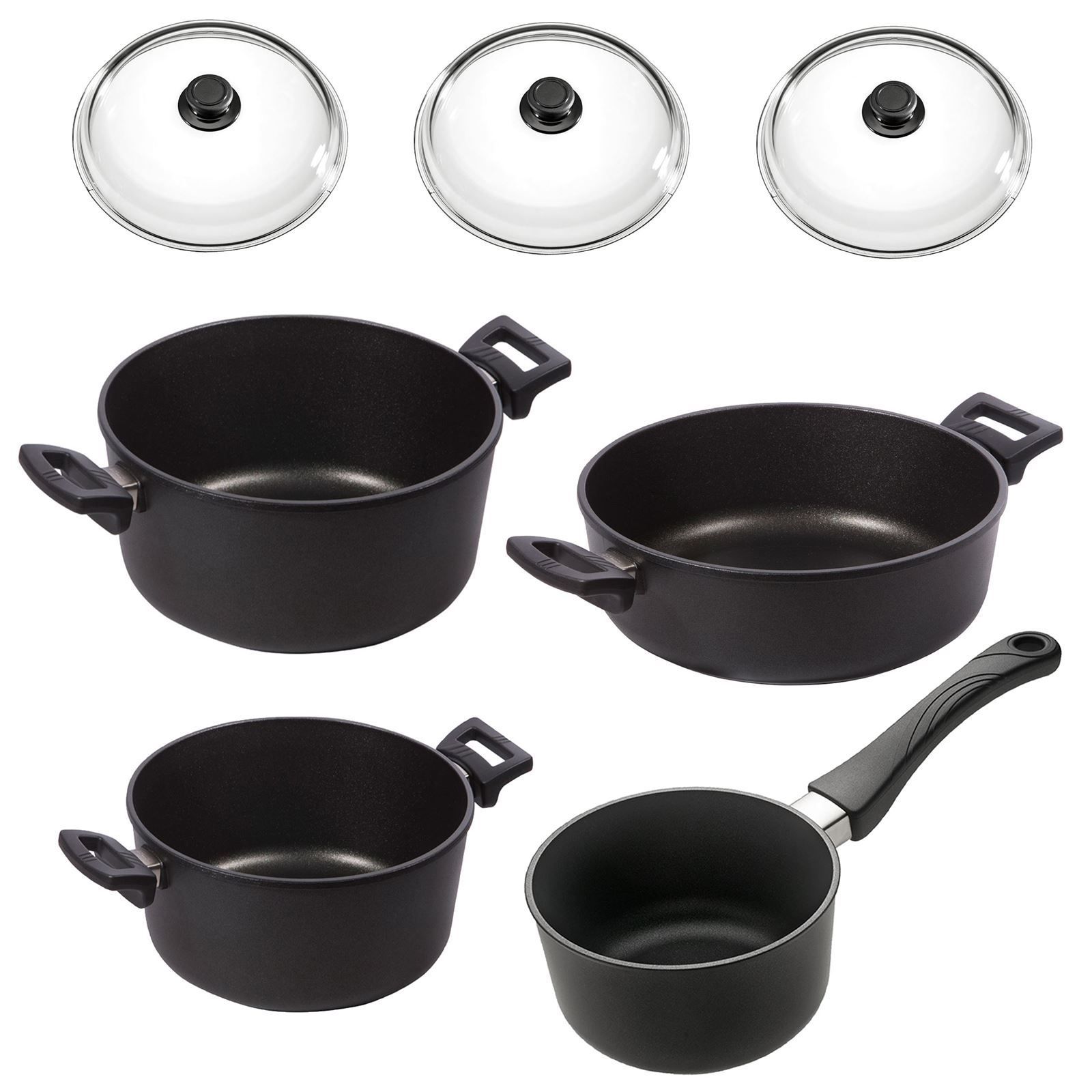 Eurolux Kochtopf Set Induktion 7-tlg. Aluguss Topfset Kochtöpfe Stieltopf Deckel