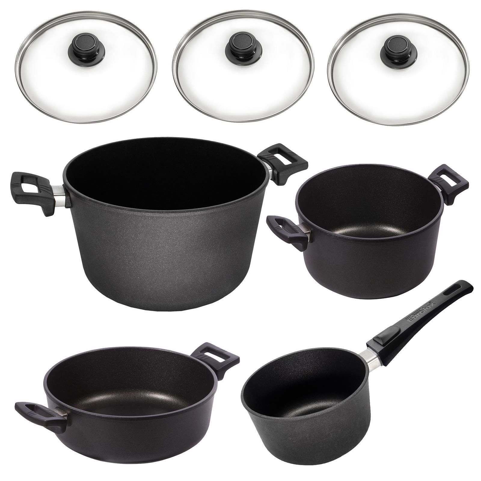 Eurolux Kochtopfset Aluguss Töpfe Topf Set Kochtöpfe Induktion 7-tlg. Glasdeckel