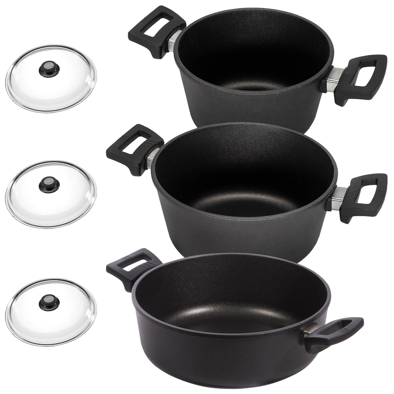 Eurolux Kochtopfset Induktion Aluguss beschichtet 6-teilig Kochtöpfe Glasdeckel