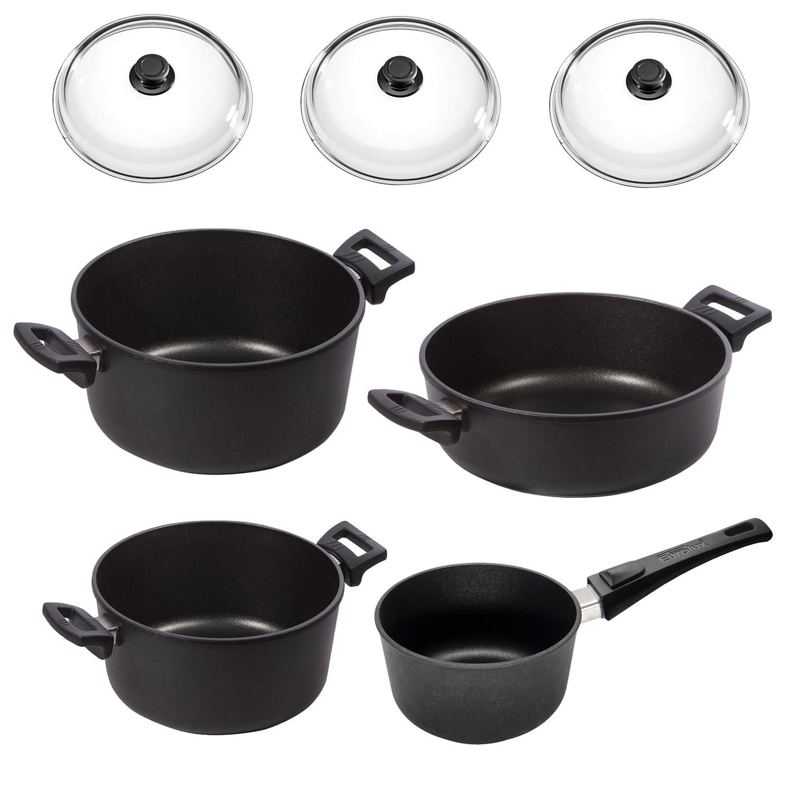 Eurolux Kochtopfset Induktion Aluguss beschichtet 7-teilig Kochtöpfe Glasdeckel