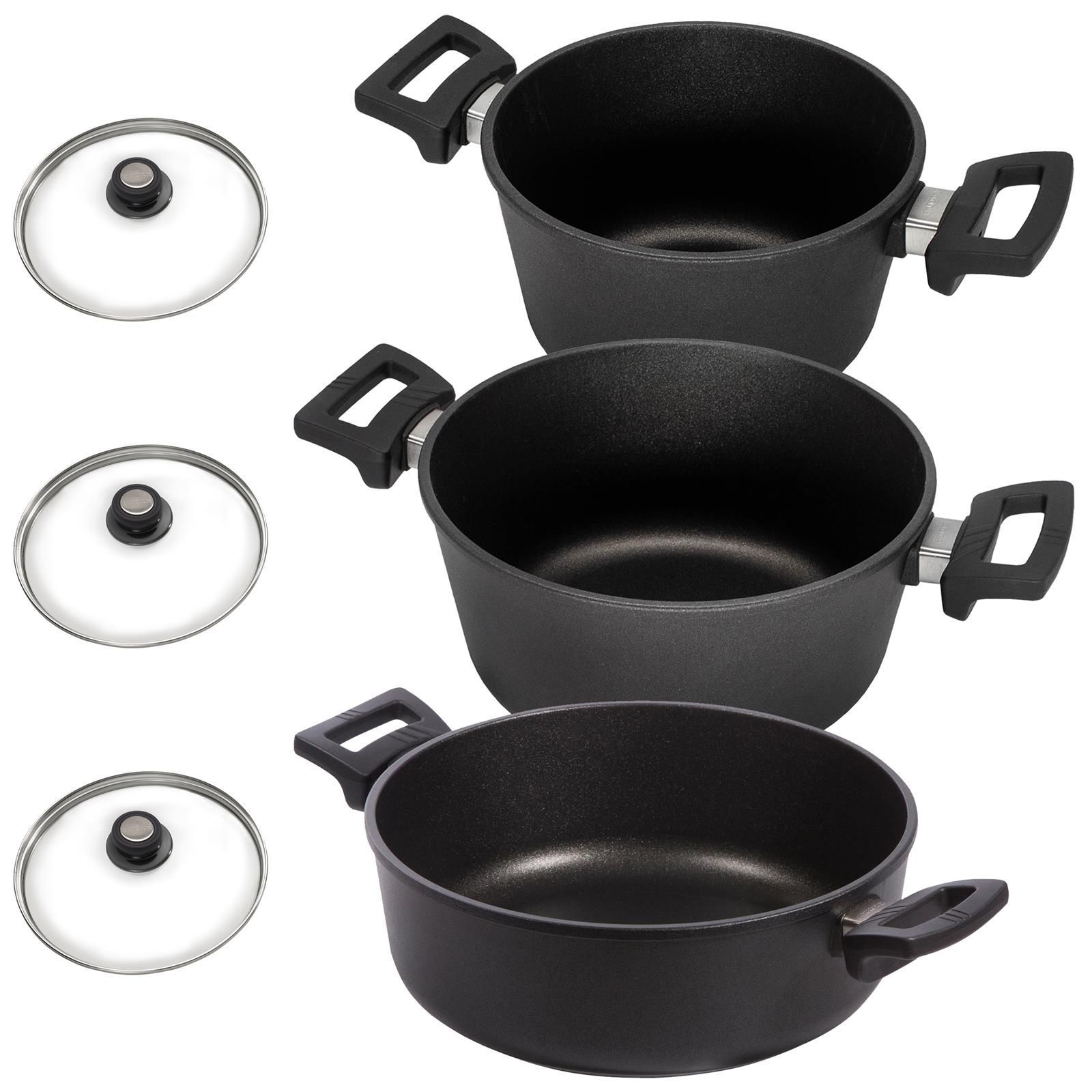 Eurolux Kochtopfset Induktion Aluguss beschichtet Kochtöpfe 6-teilig Glasdeckel