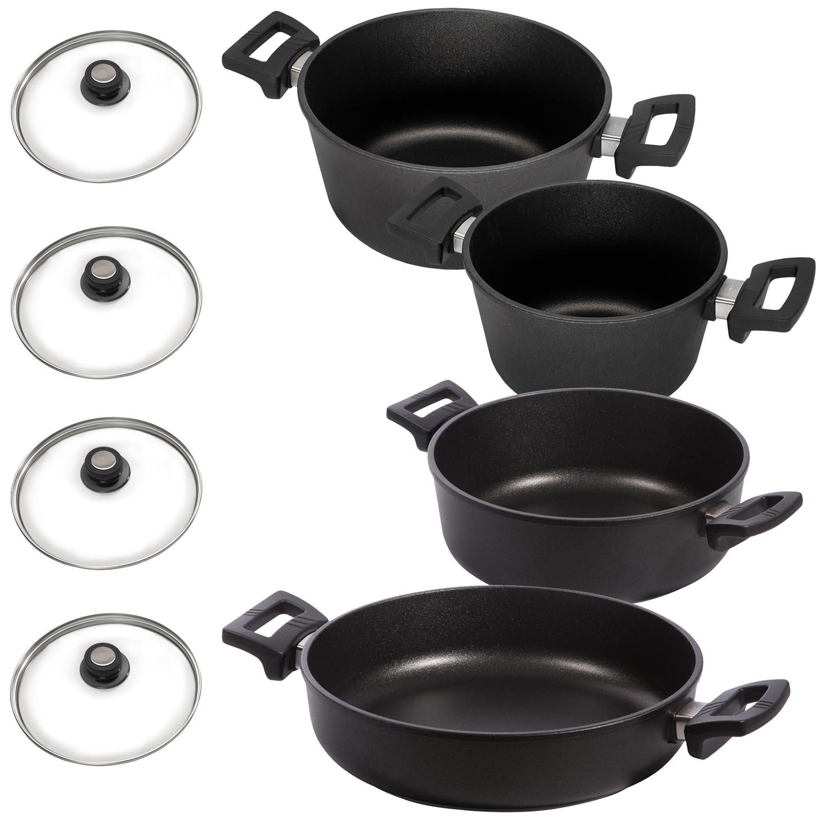 Eurolux Kochtopfset Induktion Aluguss Topf Set Servierpfanne 8-teilig Glasdeckel