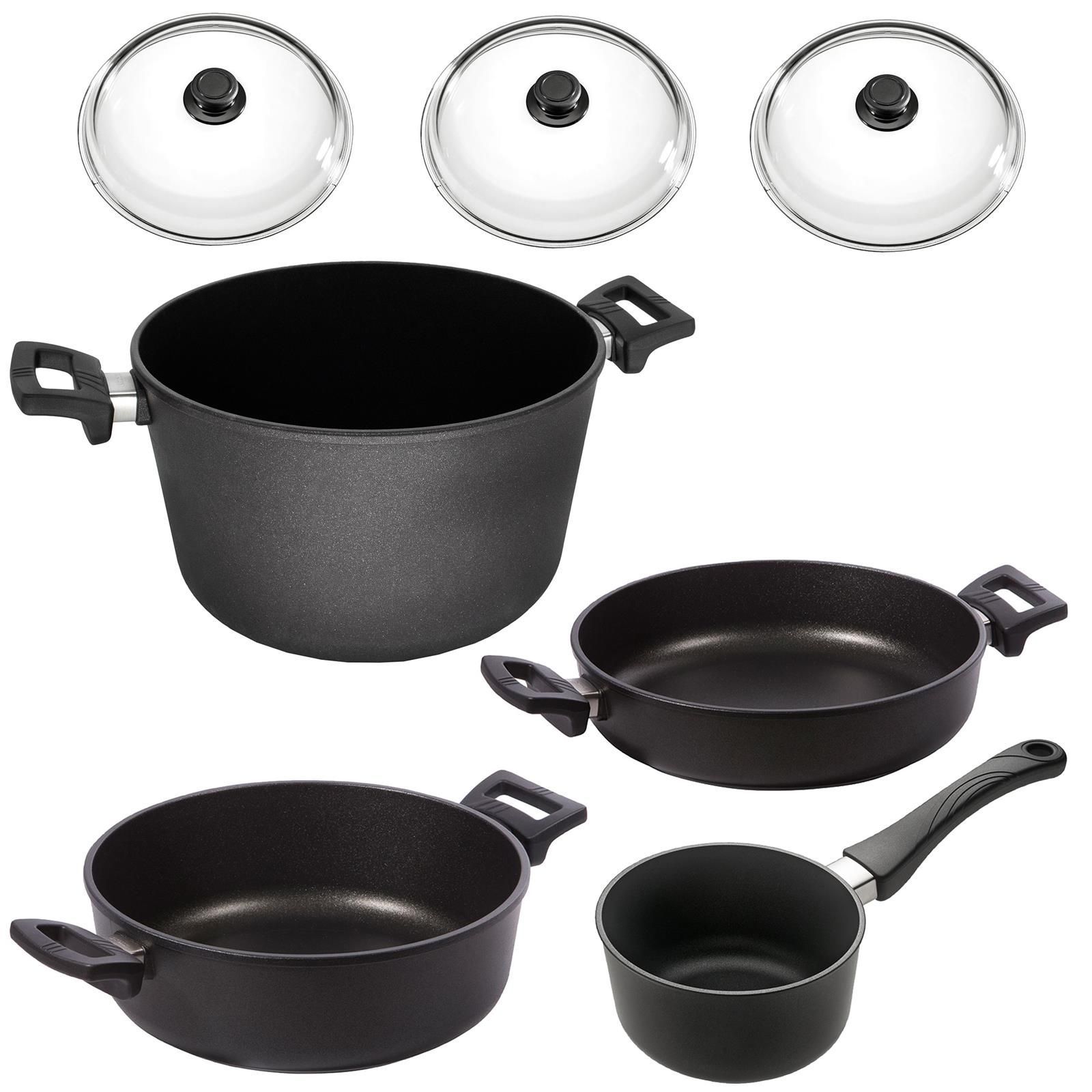 Eurolux Topfset Induktion Aluguss 7-tlg. Kochtopf Servierpfanne Stieltopf Deckel