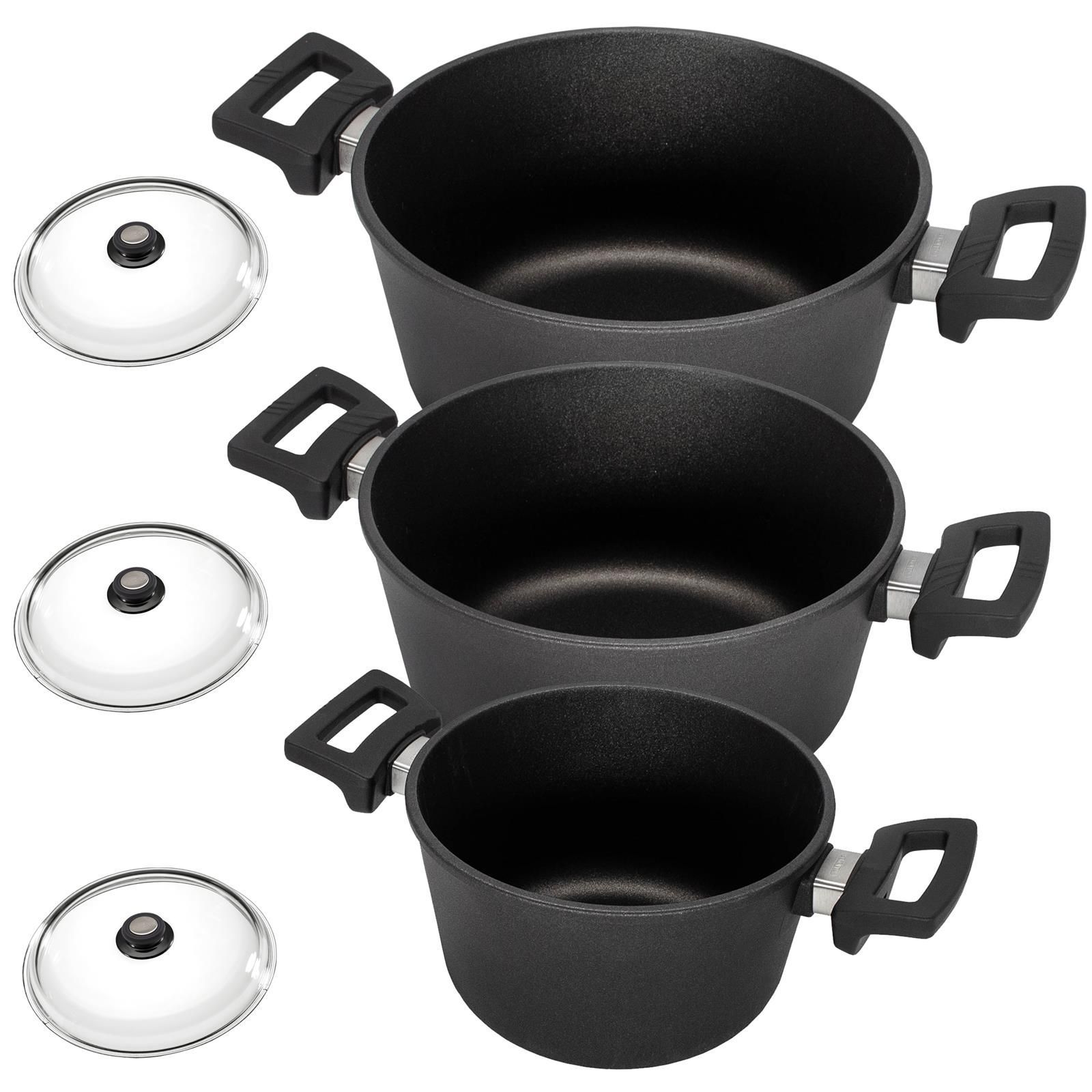 Eurolux Topfset Induktion Aluguss beschichtet 6-teilig Kochtopf mit Glasdeckel